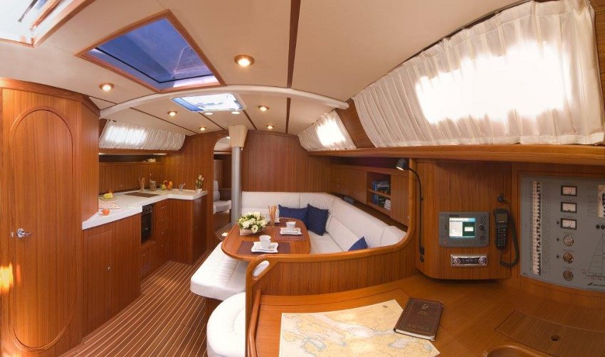 | Outside | Abnehmbarer Cockpittisch, Anker mit Kette, Badeleiter, Biminitop, Cockpitdusche, Cockpitlautsprecher, elektr. Ankerwinsch, Sonnensegel, Sprayhood, Teak im Cockpit |