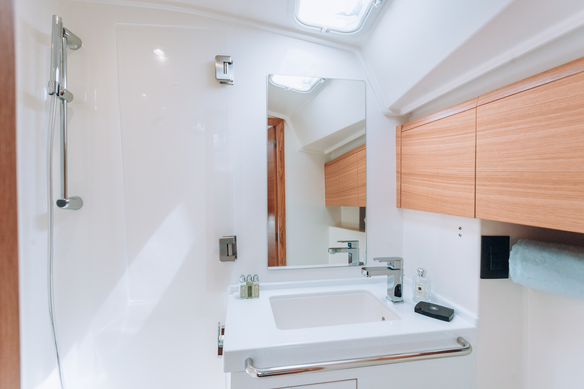 | Safety | Autopilot, Bordapotheke, Bugstrahlruder, elektr. Bilgepumpe, Feuerlöscher, Handbilgepumpe, Lifebelts, Notsignale, Rettungsinsel, Sicherheitsausrüstung, UKW-Funk |
