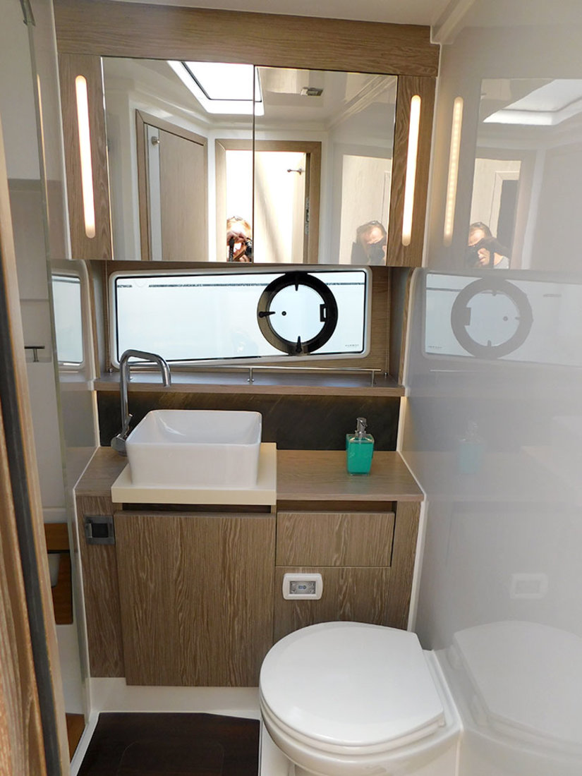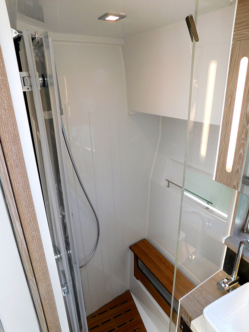 | Inside | Gefrierschrank, Generator, Heizung, Klimaanlage (ohne Landstrombedarf), Kühlschrank, Lautsprecher im Salon, Pantryausstattung, Radio mit CD und AUX-Eingang, TV + DVD, Warmwasser |