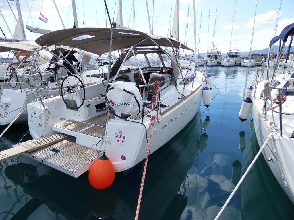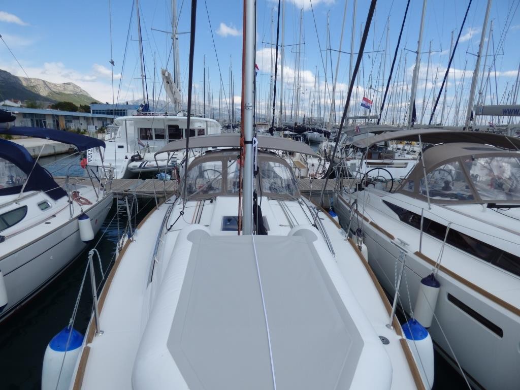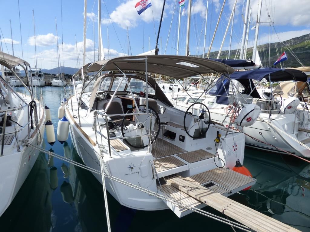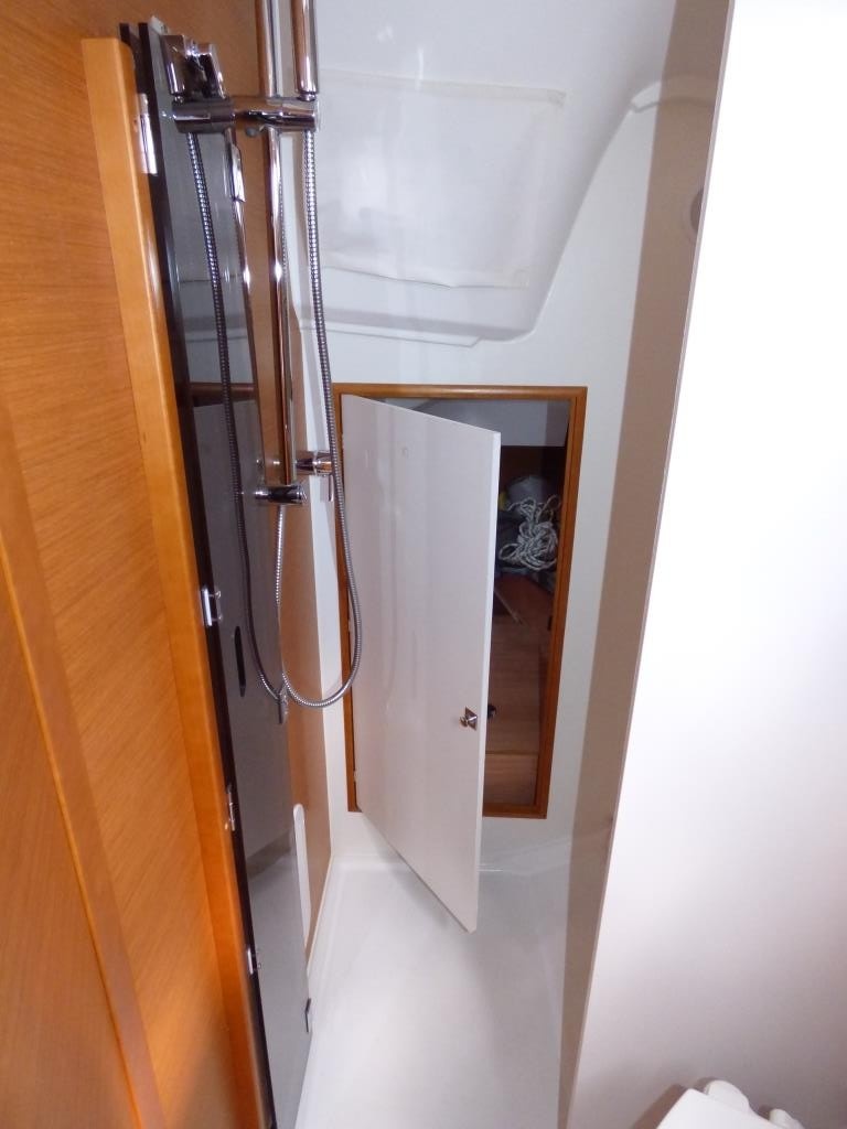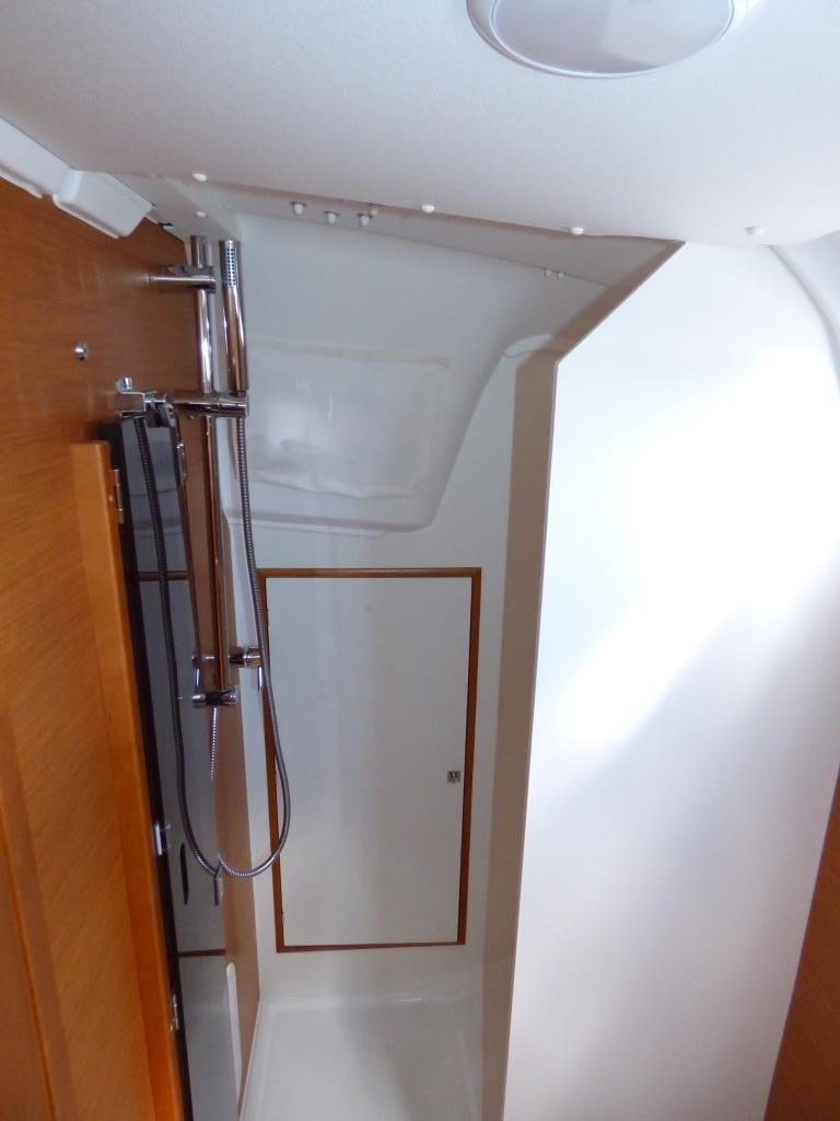 | Outside | 220 V-Landanschluss, Anker mit Kette, Badeleiter, Badeplattform, Biminitop, Cockpitdusche, Cockpitlautsprecher, Cockpitpolster, Cockpittisch, elektr. Ankerwinsch, Festmacherleinen, Gangway, Sprayhood, Wasserschlauch, Windex |