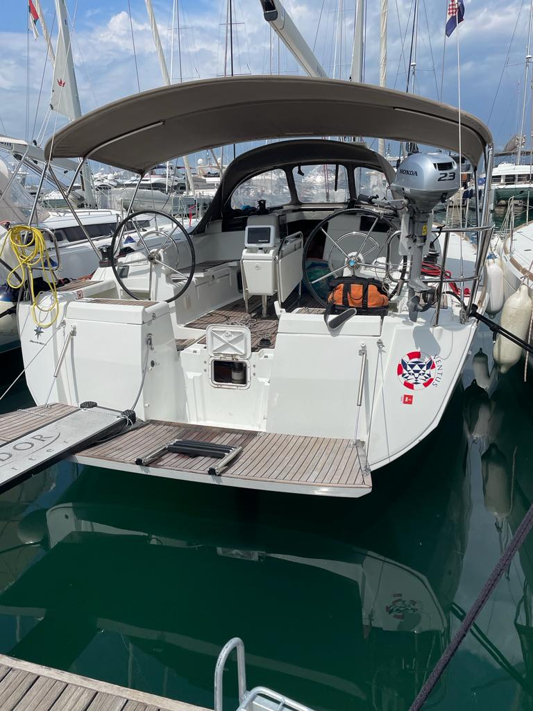 | Outside | 220 V-Landanschluss, Anker mit Kette, Badeleiter, Badeplattform, Biminitop, Cockpitdusche, Cockpitlautsprecher, elektr. Ankerwinsch, Festmacherleinen, Gangway, Sprayhood, Teak im Cockpit, Wasserschlauch |