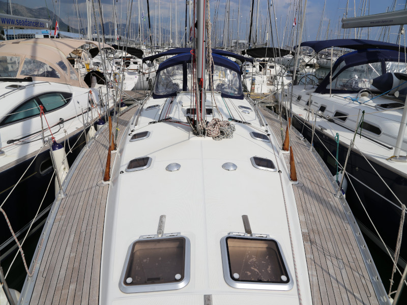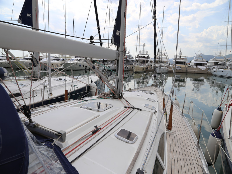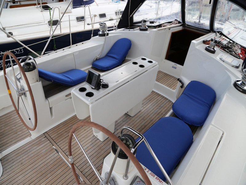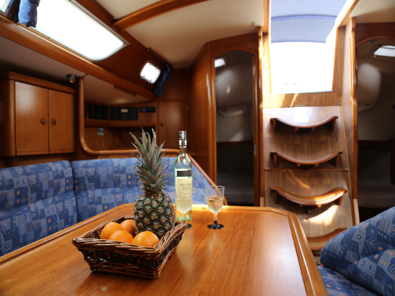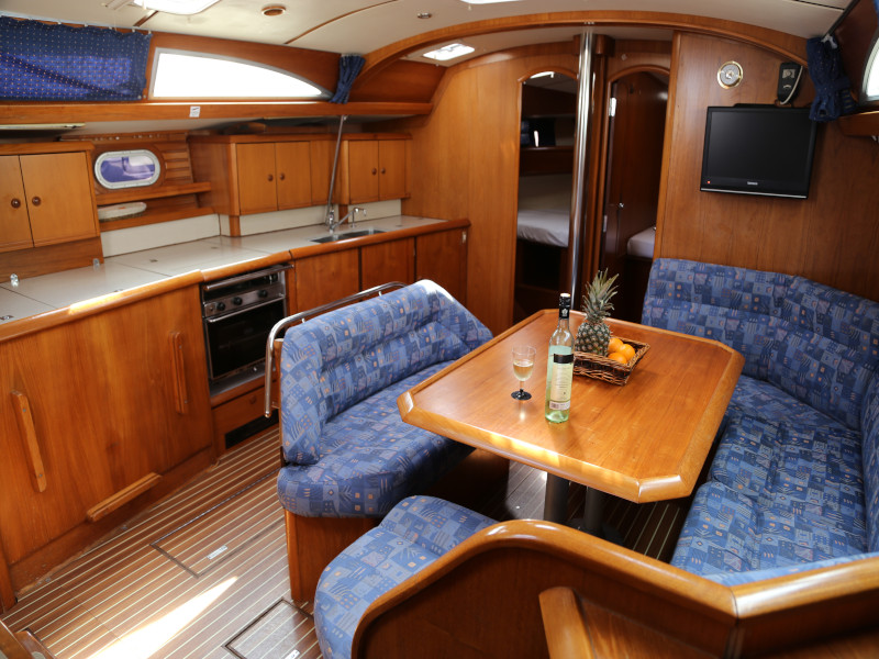 | Navigation | Barometer, GPS mit Kartenplotter im Cockpit, GPS mit Kartenplotter im Salon, Hafenhandbücher, Handpeilkompass, Kompass, Navigationsbesteck, Seekarten, Tridata (Log, Echolot, Windm.) |