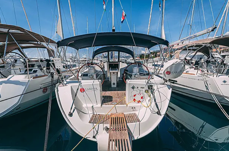 | Safety | Autopilot, Bootsmannstuhl, Bordapotheke, Bordwerkzeug, Bugstrahlruder, Feststoffschwimmwesten, Feuerlöscher, Notpinne, Notsignale, Rettungsinsel, Rettungskragen, Sicherheitsgurt, Taschenlampe, UKW-Funk, Zweitanker |