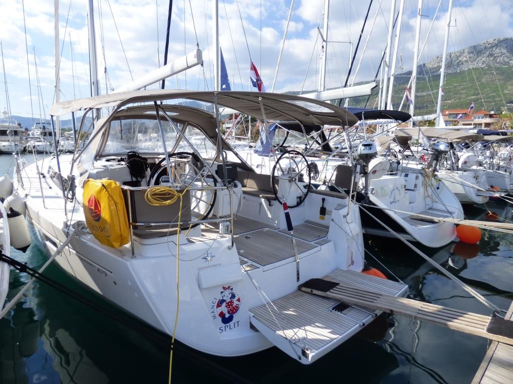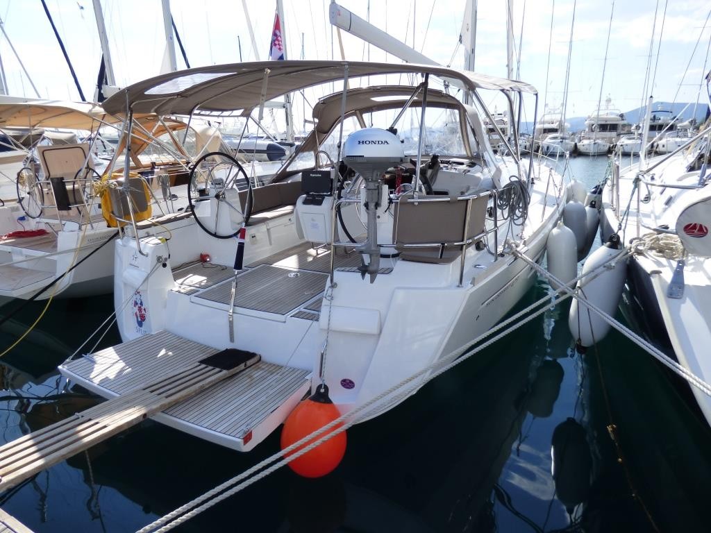 | Outside | 220 V-Landanschluss, Anker mit Kette, Badeleiter, Badeplattform, Biminitop, Cockpitdusche, Cockpitlautsprecher, elektr. Ankerwinsch, elektr. Winsch, Festmacherleinen, Gangway, Sprayhood, Teak im Cockpit, Wasserschlauch |