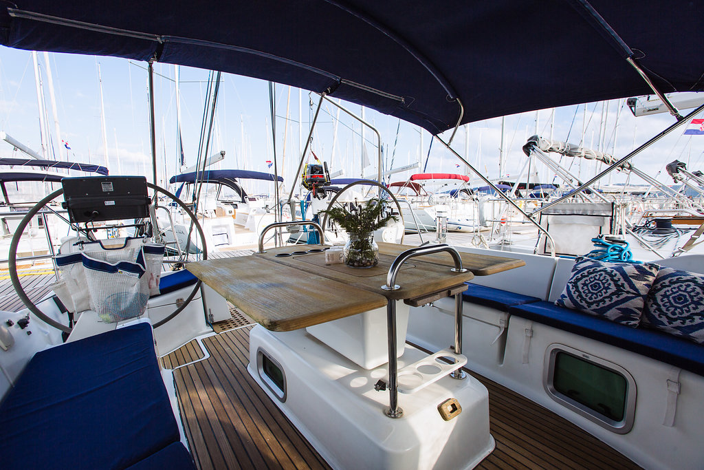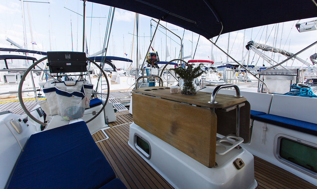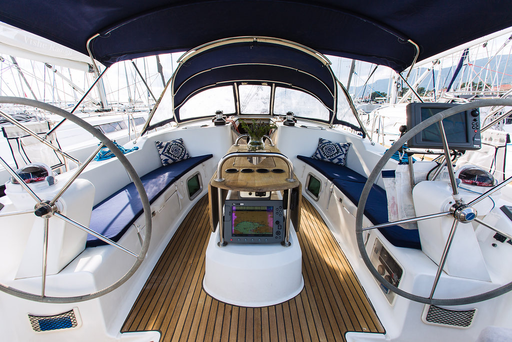 | Outside | 220 V-Landanschluss, Anker mit Kette, Biminitop, Cockpitdusche, Cockpitpolster, Cockpittisch, Deckpolster, elektr. Ankerwinsch, Sprayhood, Unterwasserbeleuchtung |