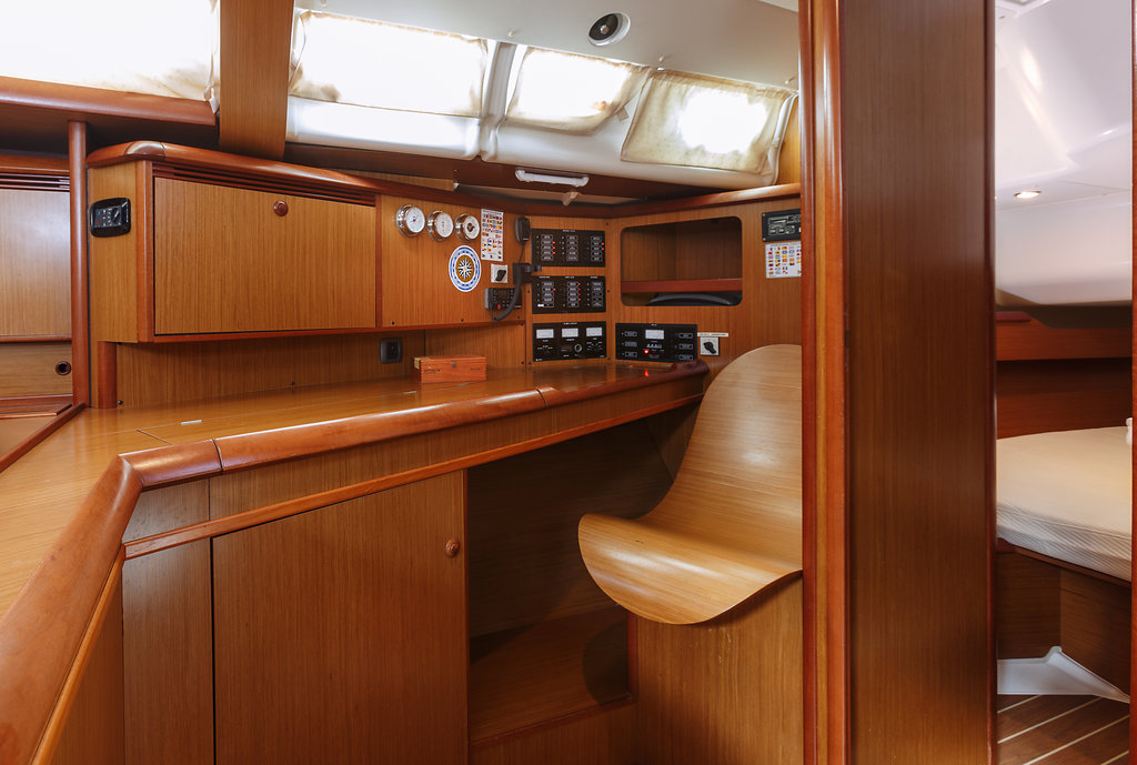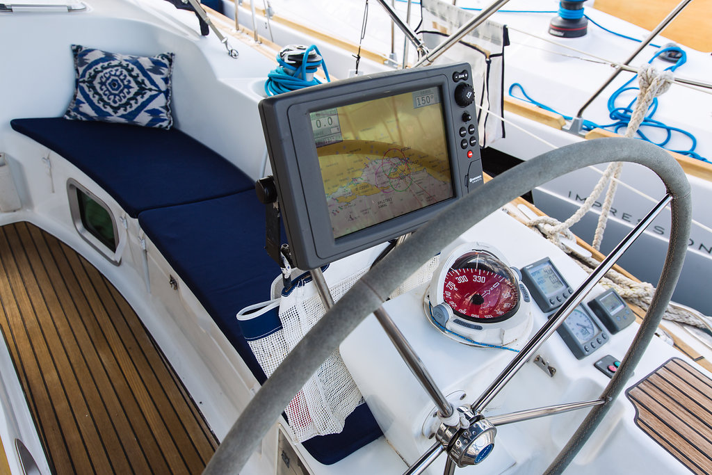 | Navigation | Echolot, GPS mit Kartenplotter im Cockpit, Kompass, Navigationsbesteck, Seekarten, Windmesser |