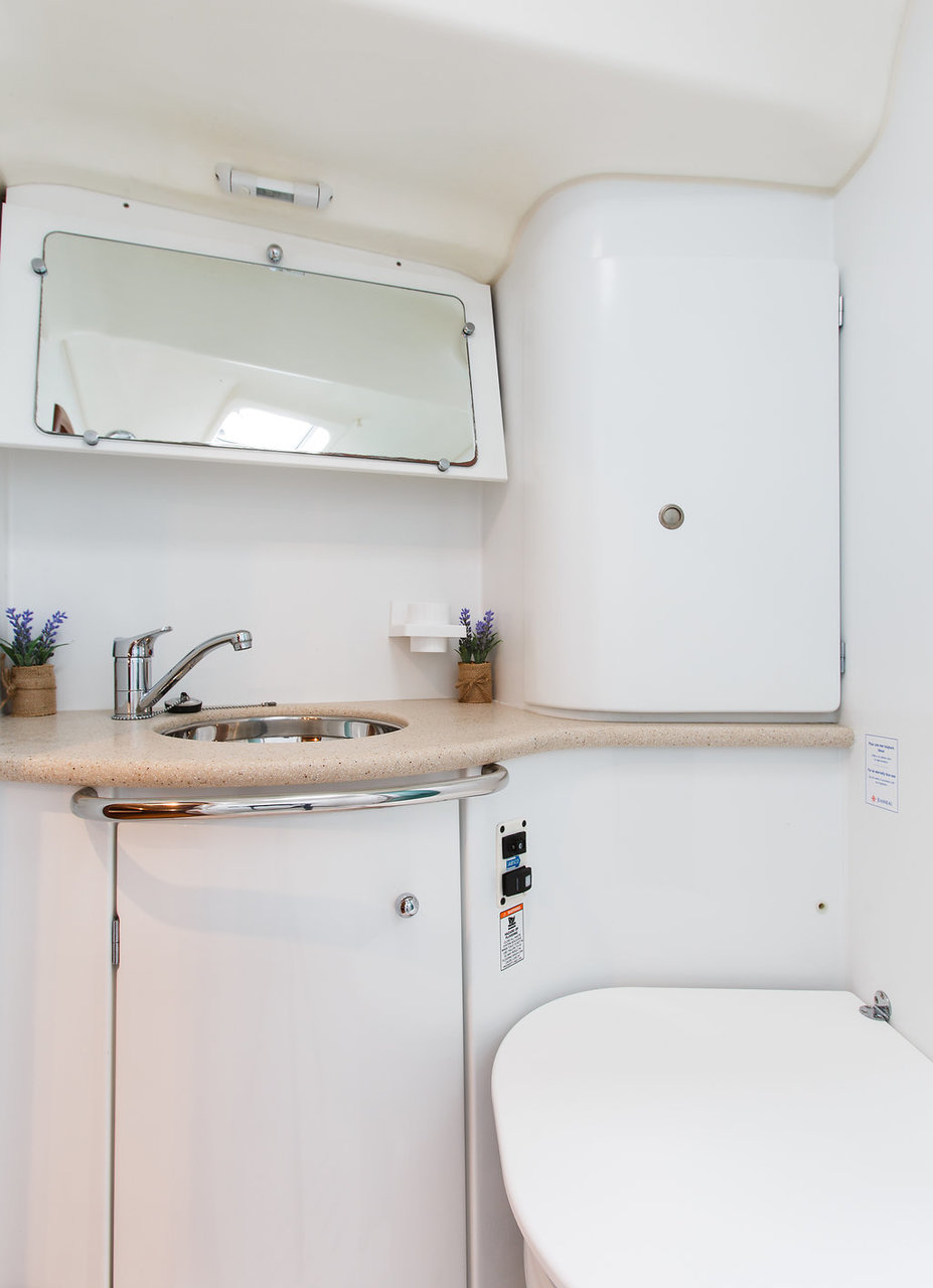 | Inside | Backofen, Fäkalientank, Heizung, Inverter 12V/220V, Kaffeemaschine, Klimaanlage (Landstrom), Kühlschrank, Mikrowelle, Pantryausstattung, Radio mit CD und MP3, Salontisch absenkbar, TV + DVD, Warmwasser, WC (elektr.) |