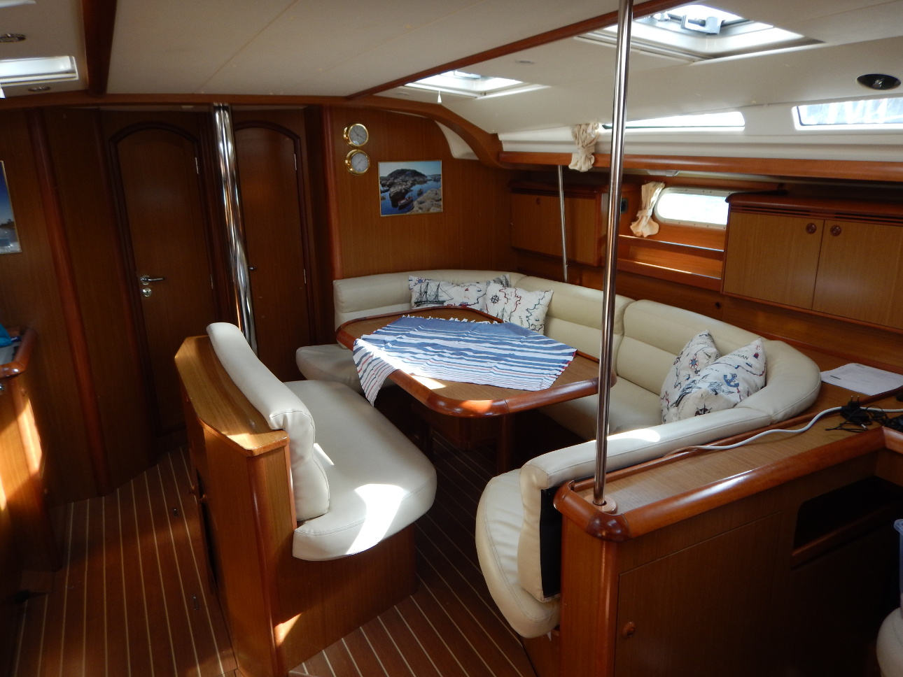 | Navigation | GPS mit Kartenplotter im Salon, Hafenhandbücher, Handpeilkompass, Kompass, Seekarten, Tridata (Log, Echolot, Windm.) |