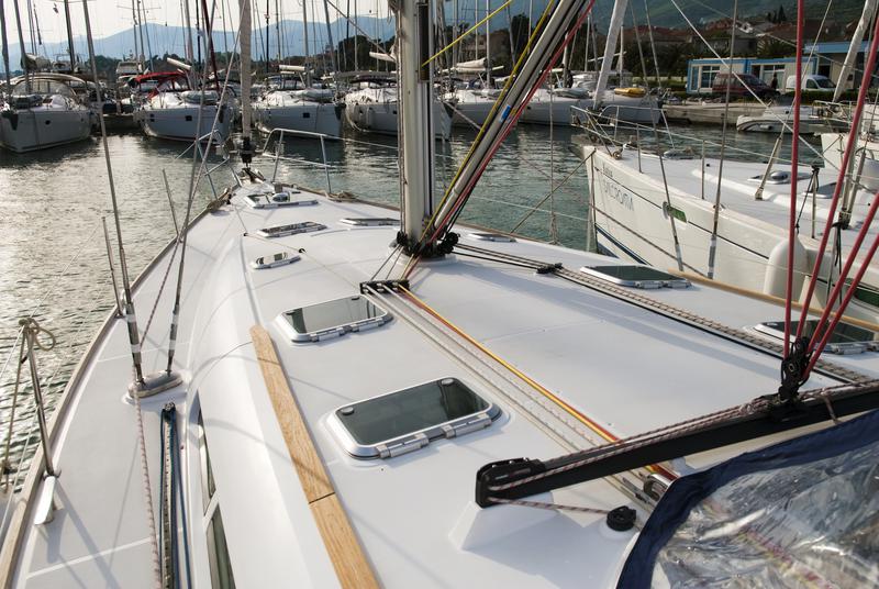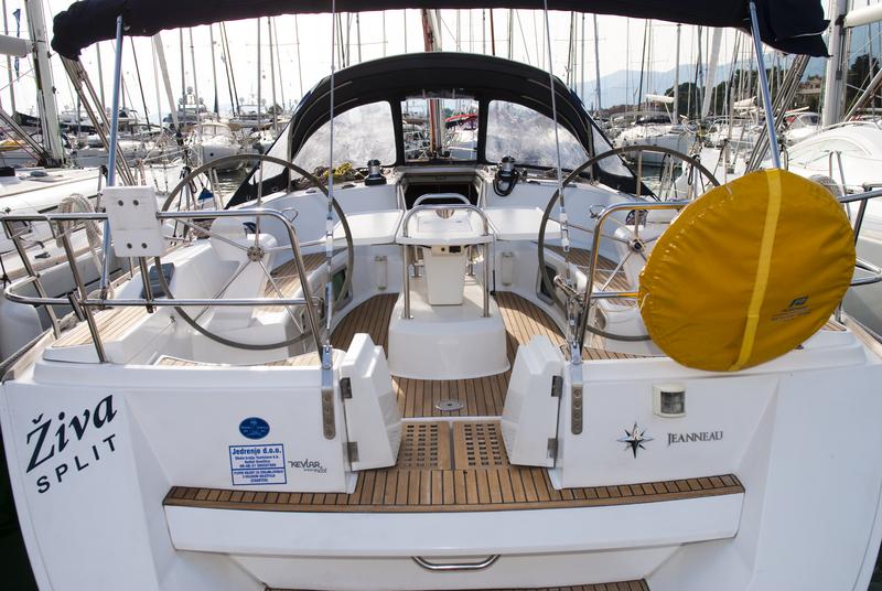 | Outside | 12 V-Anschluss, 220 V-Landanschluss, Anker mit Kette, Badeleiter, Biminitop, Cockpitdusche, Cockpitlautsprecher, Cockpittisch, elektr. Ankerwinsch, Fender, Festmacherleinen, Sprayhood, Teak im Cockpit, Wantenschneider, Windex |