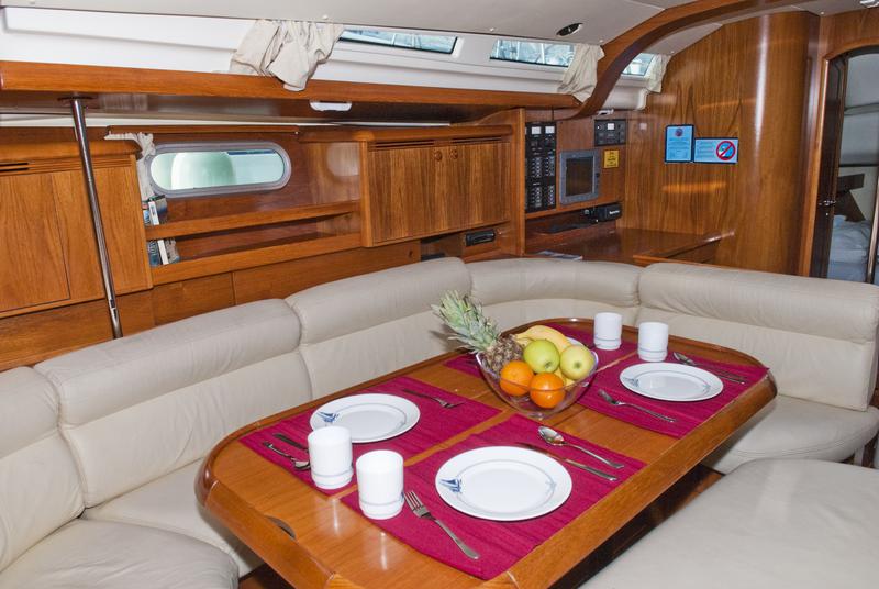 | Navigation | Echolot, GPS mit Kartenplotter im Salon, Hafenhandbücher, Handpeilkompass, Kompass, Seekarten, Sumlog, Windmesser |