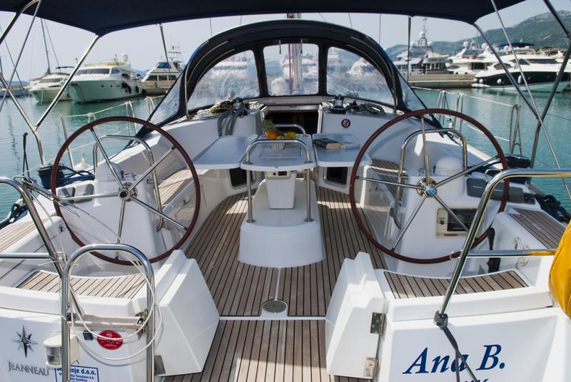 | Outside | 12 V-Anschluss, 220 V-Landanschluss, Anker mit Kette, Badeleiter, Biminitop, Cockpitdusche, Cockpitlautsprecher, Cockpittisch, elektr. Ankerwinsch, Fender, Festmacherleinen, Sprayhood, Teak im Cockpit, Windex |