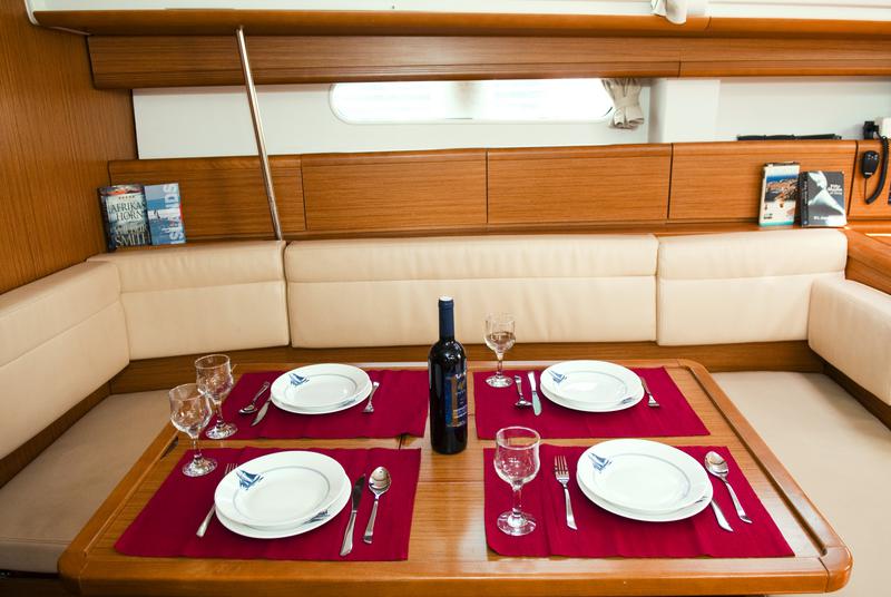 | Navigation | Echolot, GPS mit Kartenplotter im Salon, Hafenhandbücher, Handpeilkompass, Kompass, Seekarten, Sumlog, Windmesser |