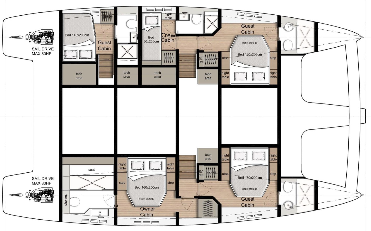 | Kabinen: | 4 | Kojen: | 8+2 |