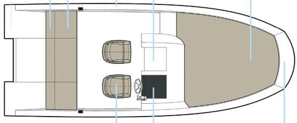 | Outside | 12 V-Anschluss, Badeleiter, Badeplattform, Cockpitpolster, Cockpittisch |