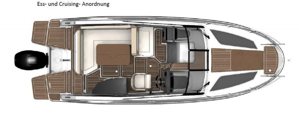| Outside | 220 V-Landanschluss, Badeleiter, Biminitop, Cockpittisch, elektr. Ankerwinsch, Heckdusche |