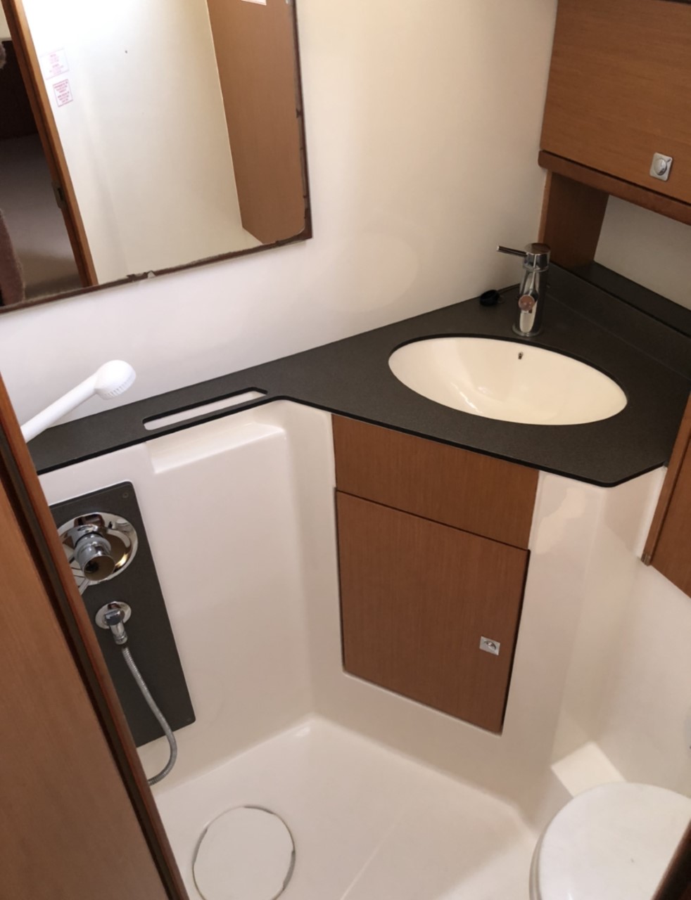 | Outside | 220 V-Landanschluss, Anker mit Kette, Badeplattform, Biminitop, Cockpitdusche, Cockpitpolster, elektr. Ankerwinsch, Fender, Sprayhood |