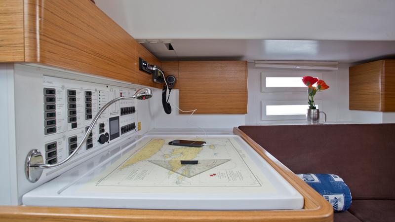 | Navigation | GPS mit Kartenplotter im Cockpit, Kompass, Seekarten, Tridata (Log, Echolot, Windm.), Windmesser |