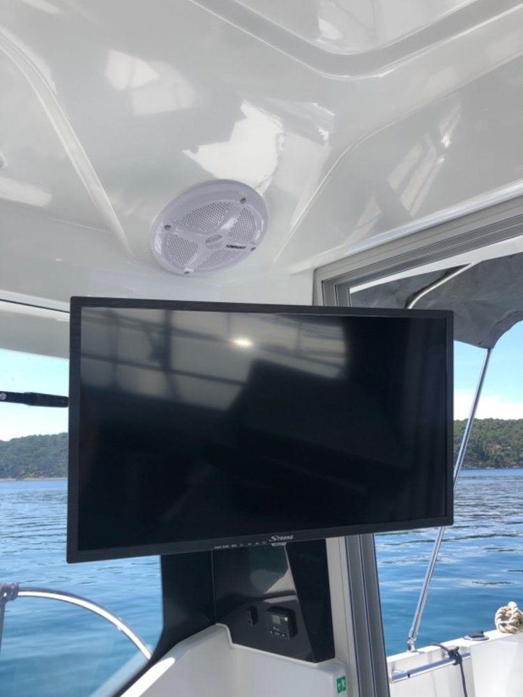 | Outside | 12 V-Anschluss, 220 V-Landanschluss, Angelhalterung, Badeleiter, Badeplattform, Biminitop, Cockpitdusche, Cockpittisch, Deckpolster, elektr. Ankerwinsch, Fender, Gangway, Kuchenbude, Solaranlage, Sonnendeck, Unterwasserbeleuchtung |