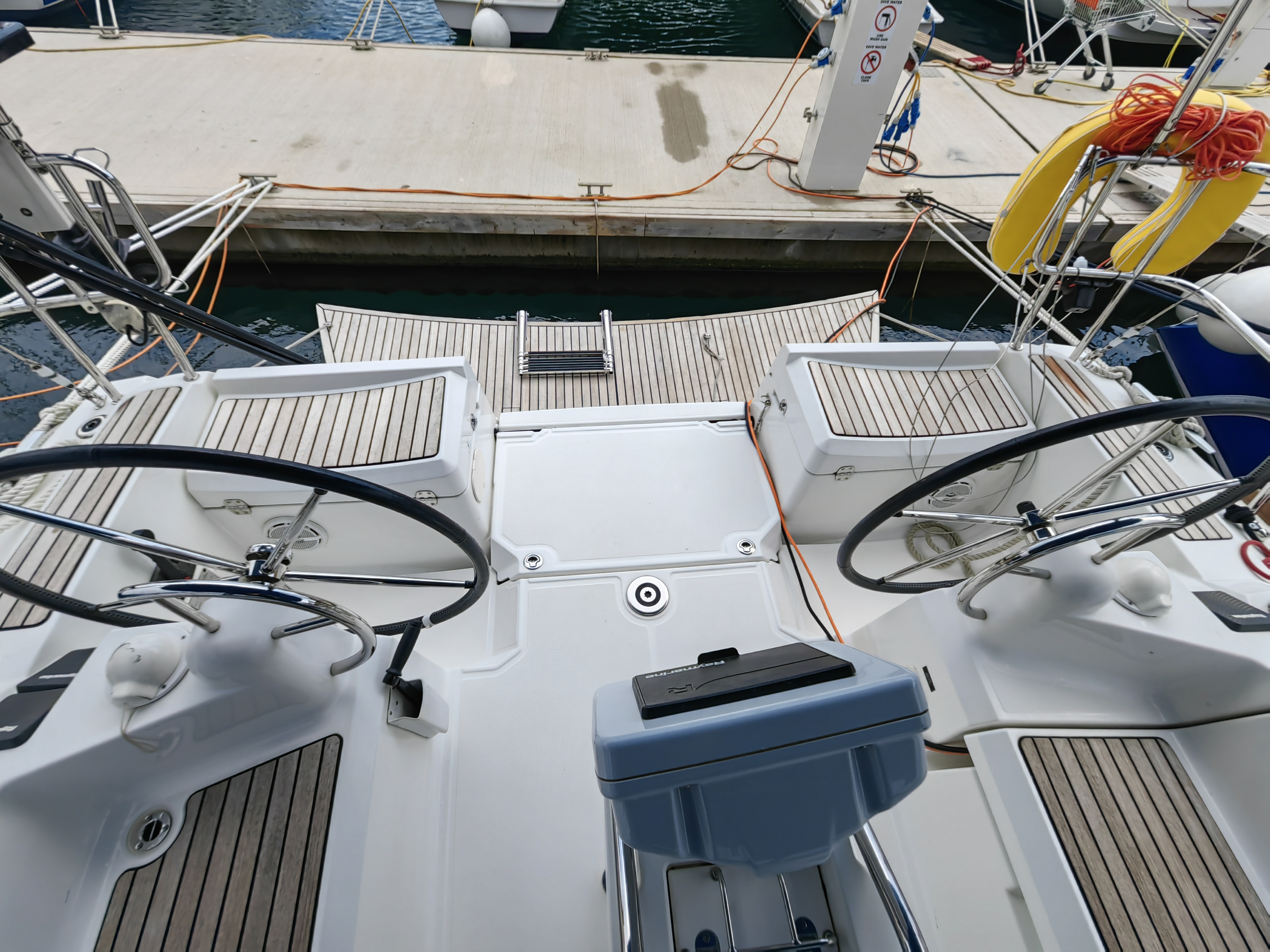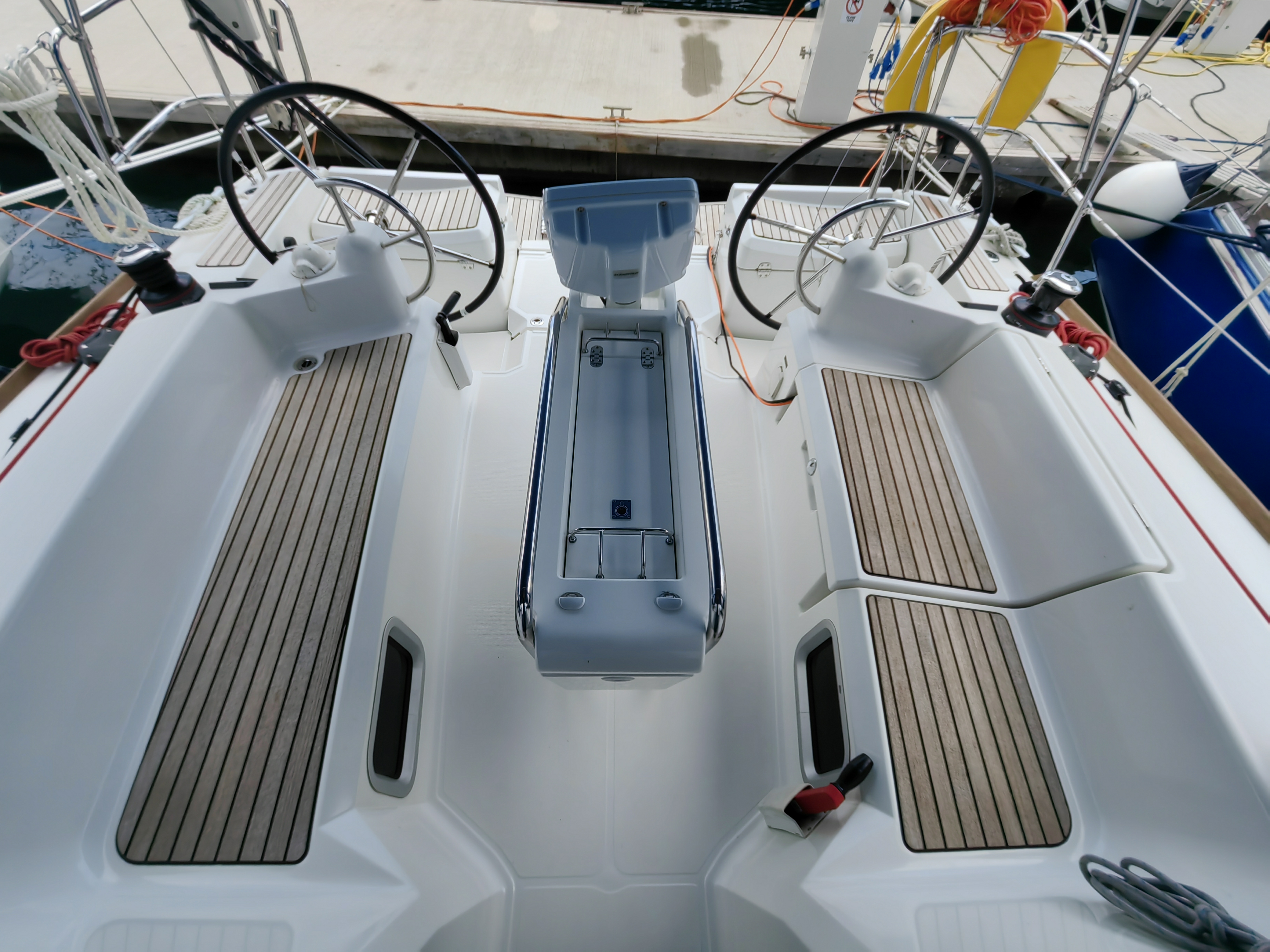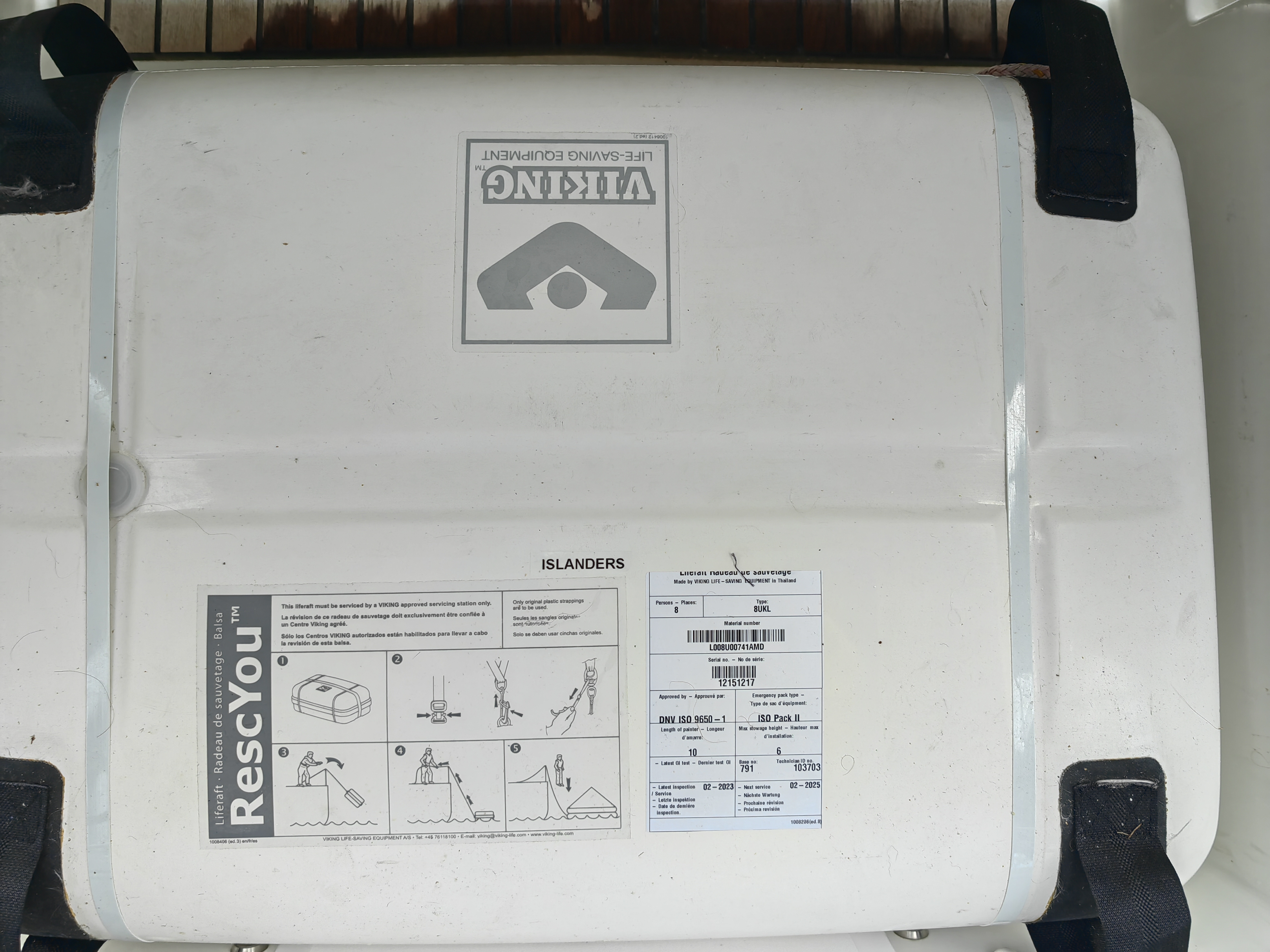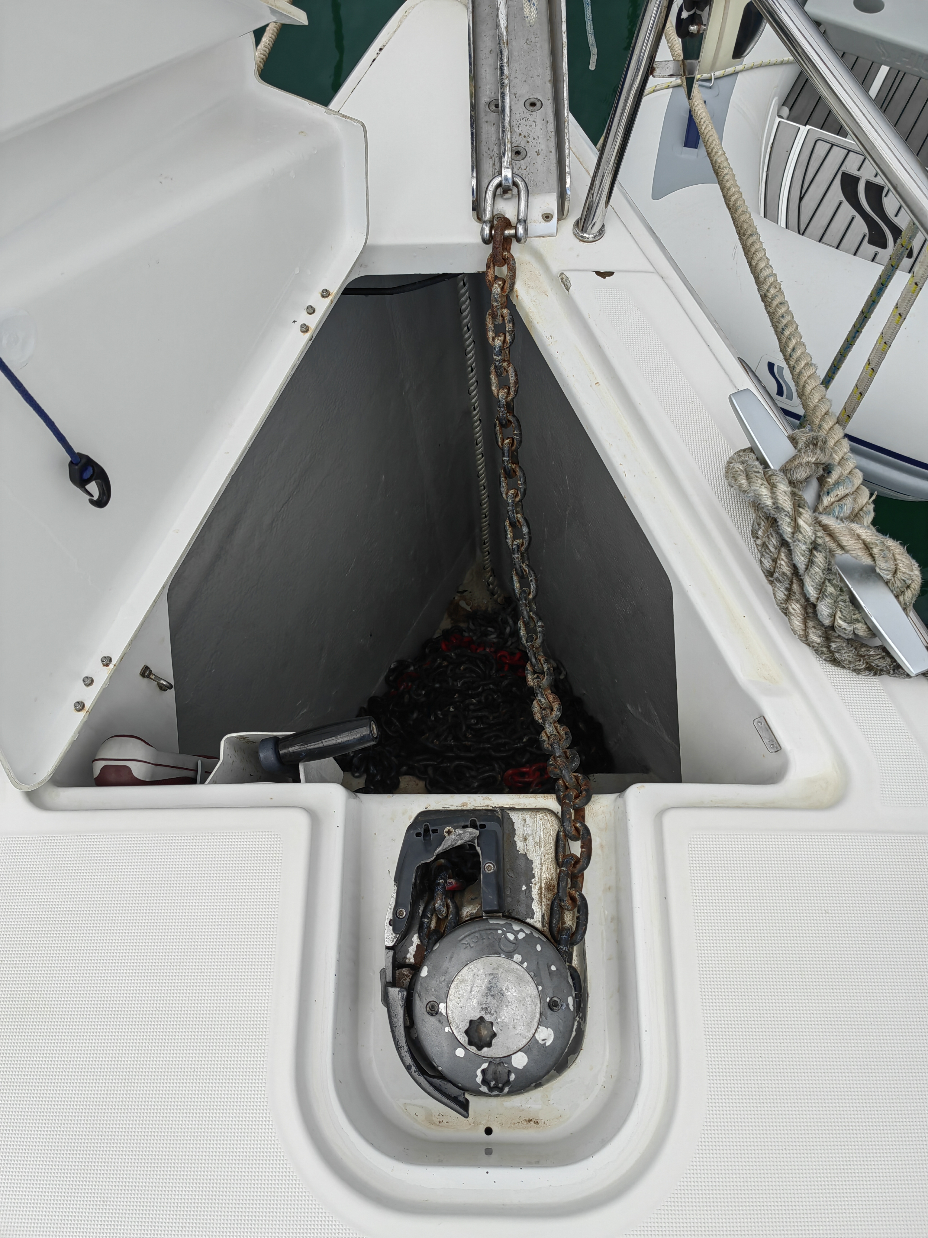 | Outside | 220 V-Landanschluss, Anker mit Kette, Biminitop, Cockpitlautsprecher, Cockpitpolster, elektr. Ankerwinsch, Fallwinschen, Fender, Festmacherleinen, Lifeline System, Schnorchelausrüstung, Solaranlage, Sprayhood, Winschen |