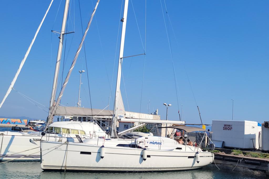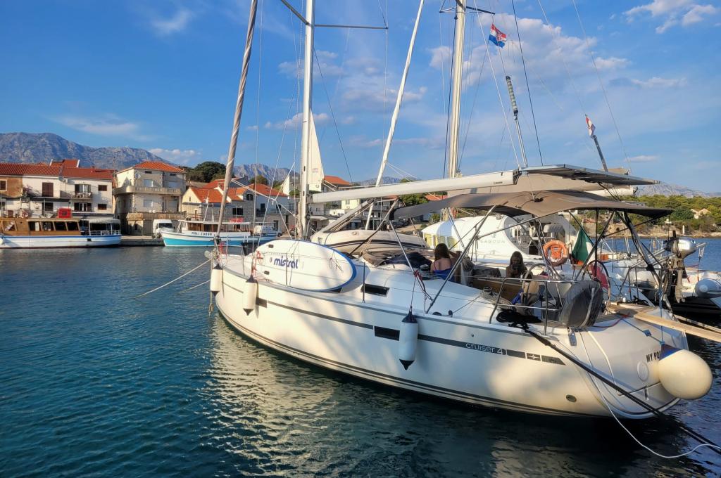 | Navigation | Barometer, Echolot, Fernglas, GPS mit Kartenplotter im Cockpit, Hafenhandbücher, Navigationsbesteck, Seekarten, Sumlog, Thermometer, Windmesser |