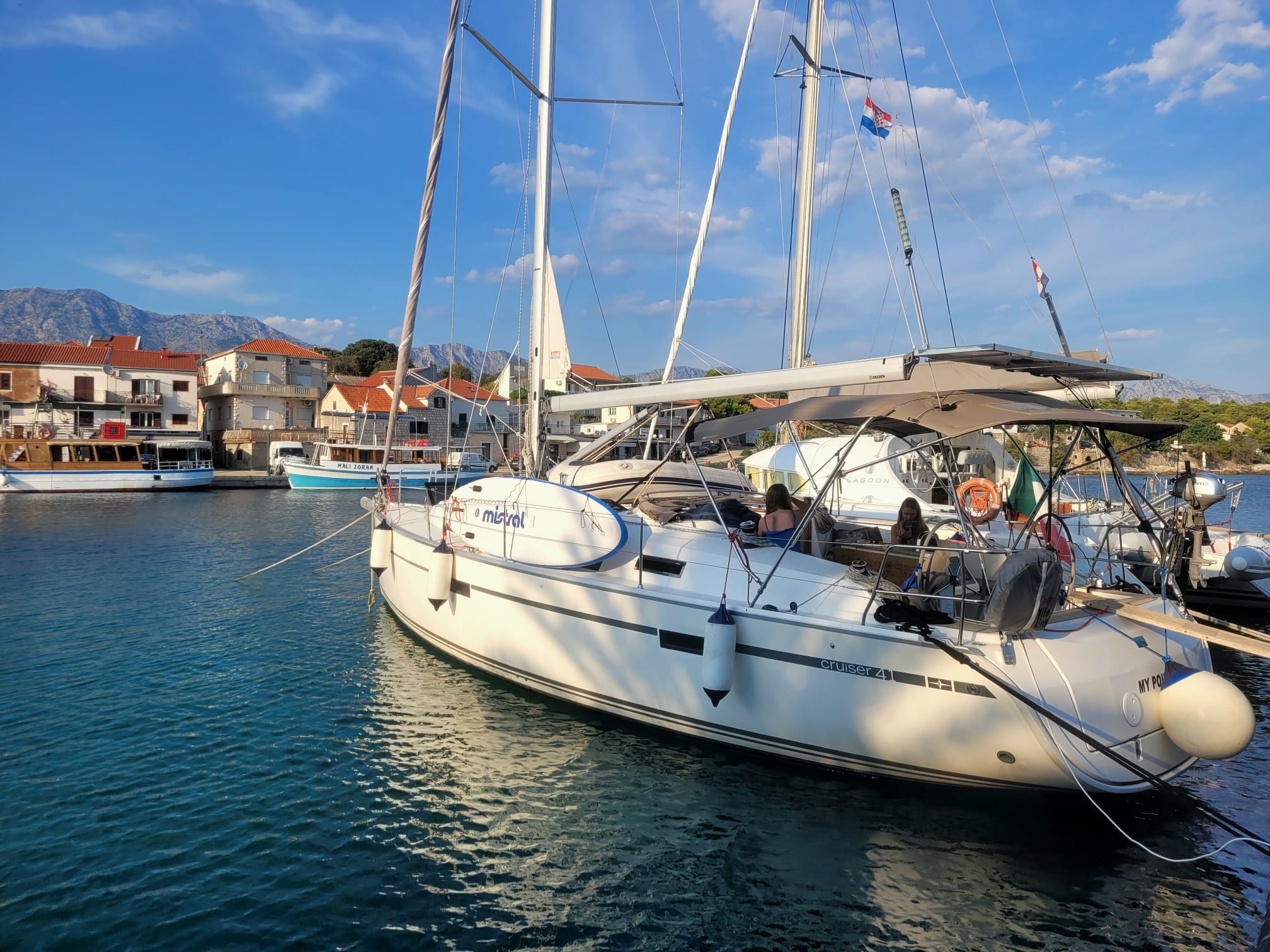 | Safety | Autopilot, Bugstrahlruder, Feststoffschwimmwesten, Flaggen, Radarreflektor, UKW-Funk |