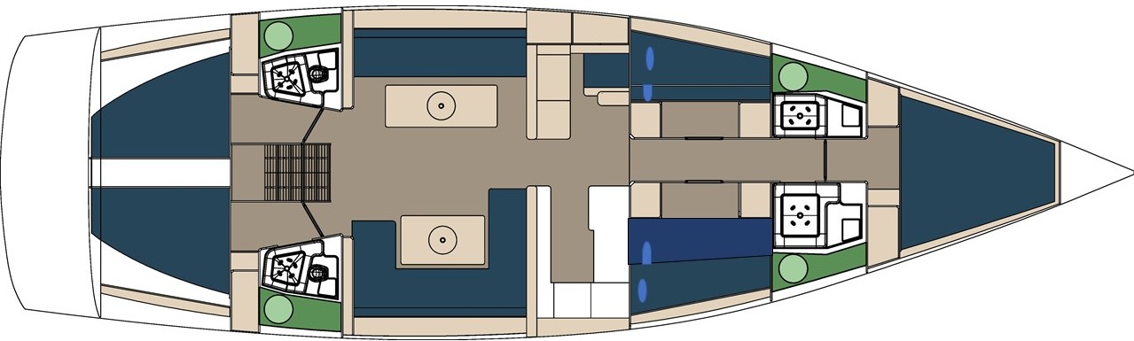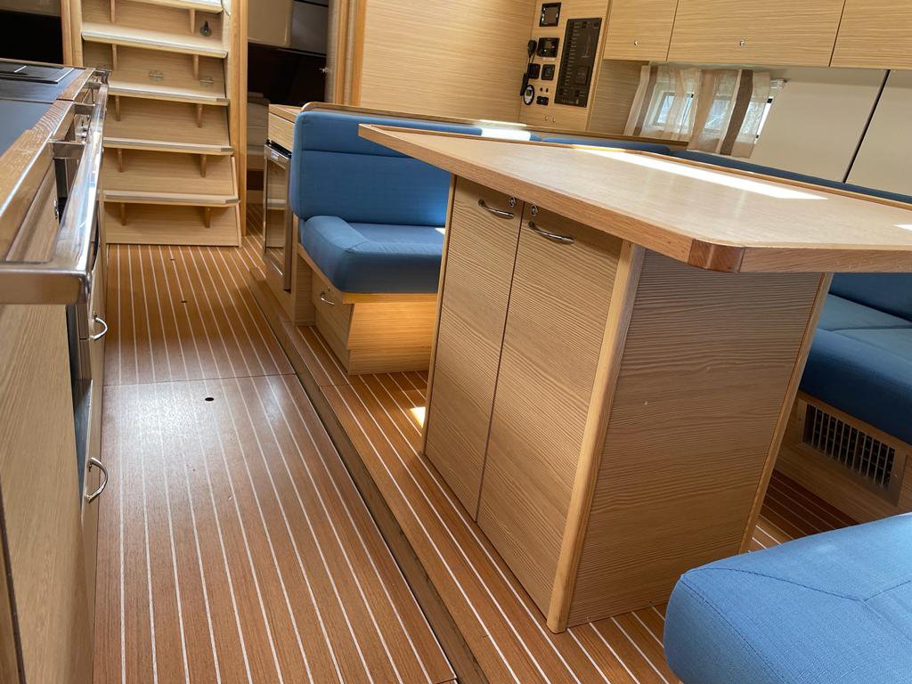 | Navigation | Barometer, Echolot, Fernglas, GPS mit Kartenplotter im Cockpit, Hafenhandbücher, Navigationsbesteck, Seekarten, Sumlog, Thermometer, Windmesser |