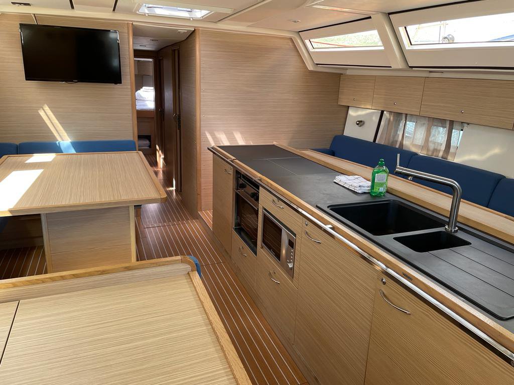 Bei einer Kränkung von 40/45* kippte die gesamte Küchen Zeile um da sie nur mit zwei Spax befestigt war. Es wurde niemand verletzt und dank der handwerklich begabten Crew wurde sie relativ schnell wieder aufgestellt. Wir waren am Rückweg und der „segelausfall“ war gering. Der Chaterer wurde informiert und entschuldigte sich vielmals, war selbst überrascht und veranlasste sofort eine große Reparatur…….