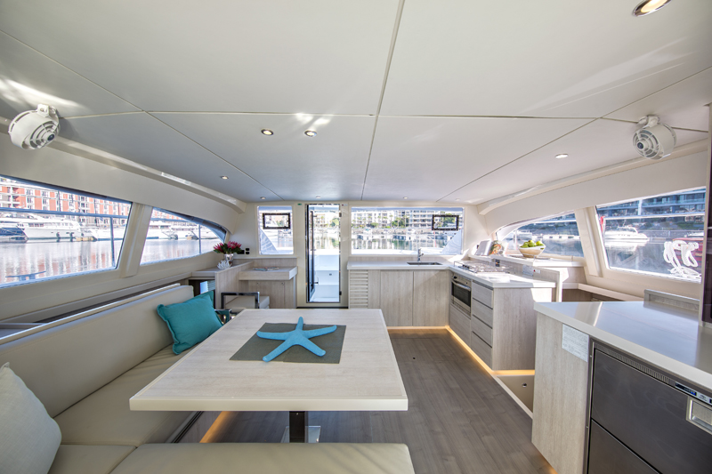 | Safety | Autopilot, elektr. Bilgepumpe, Feststoffschwimmwesten, Feuerlöscher, Handbilgepumpe, Nebelhorn, Notpinne, Notsignale, Rettungskragen, Rückfahrkamera, Sicherheitsgurt, UKW-Funk, Zweitanker |
