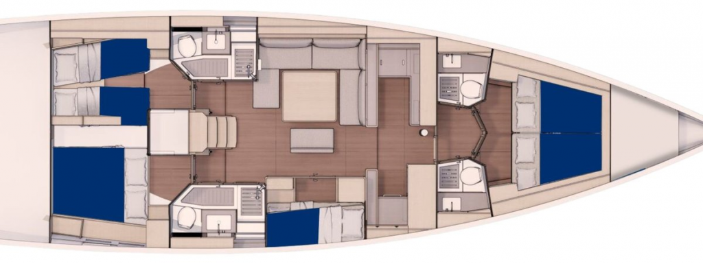 | Kabinen: | 5+1 | Kojen: | 10+1+1 |