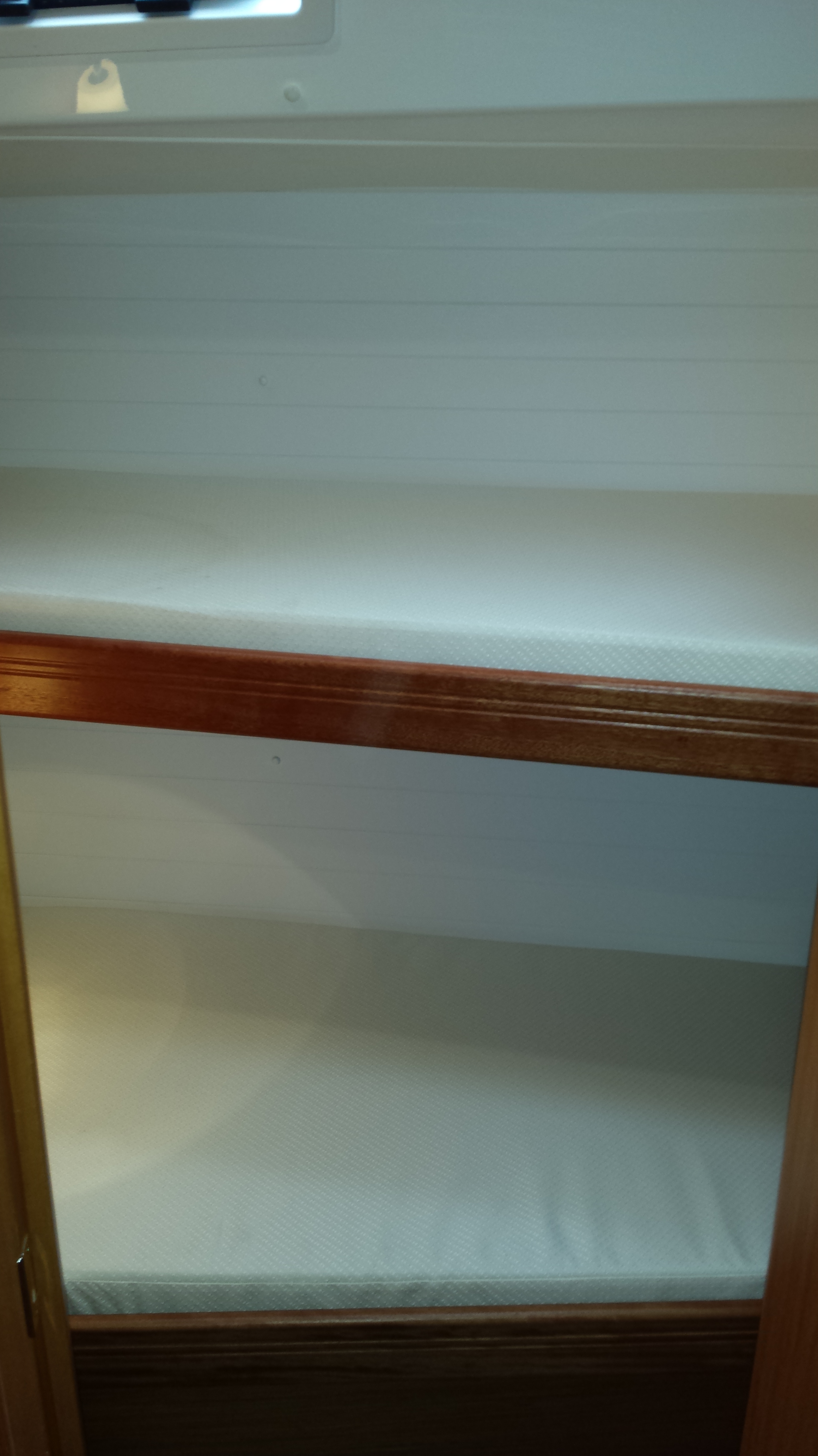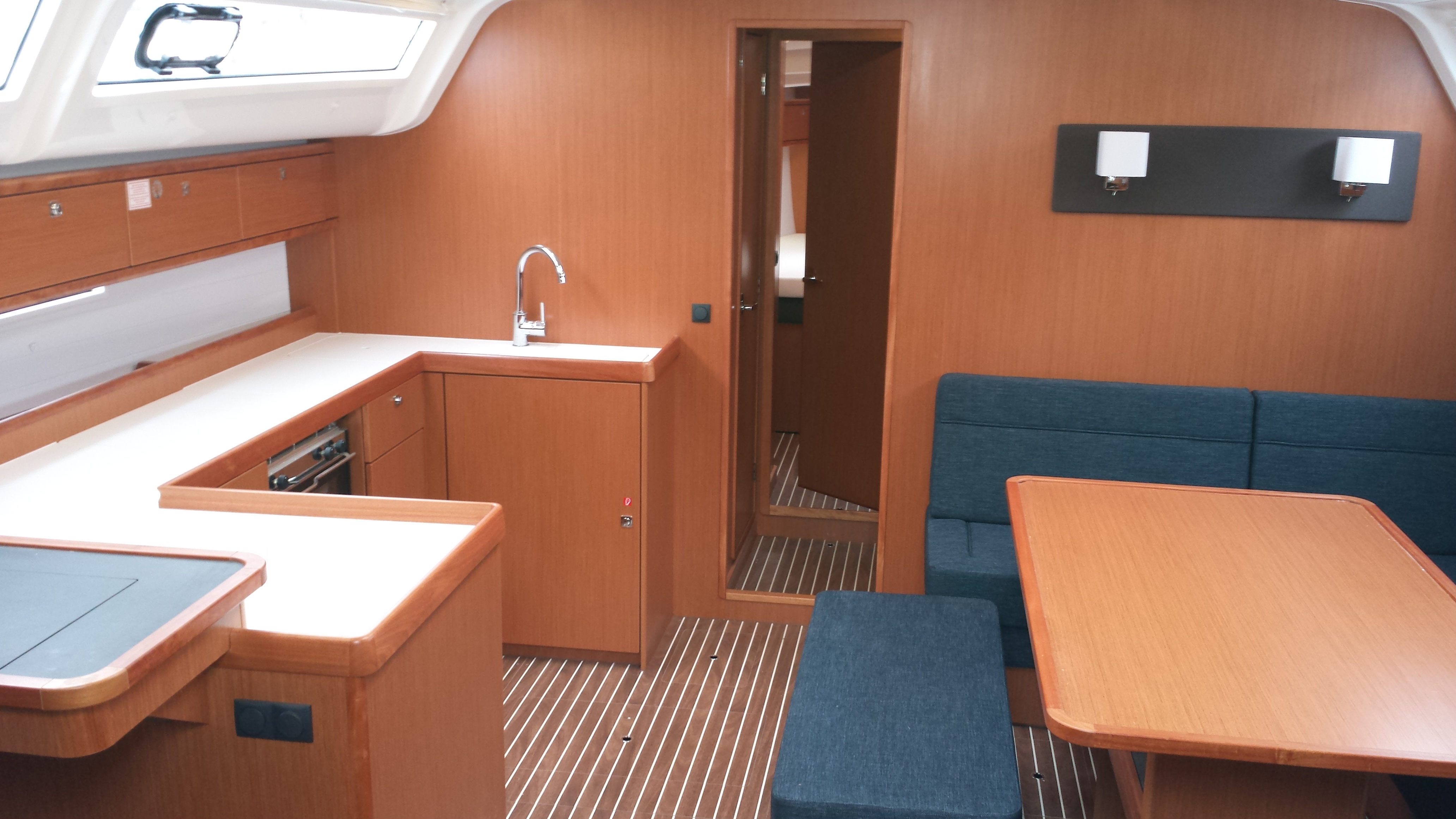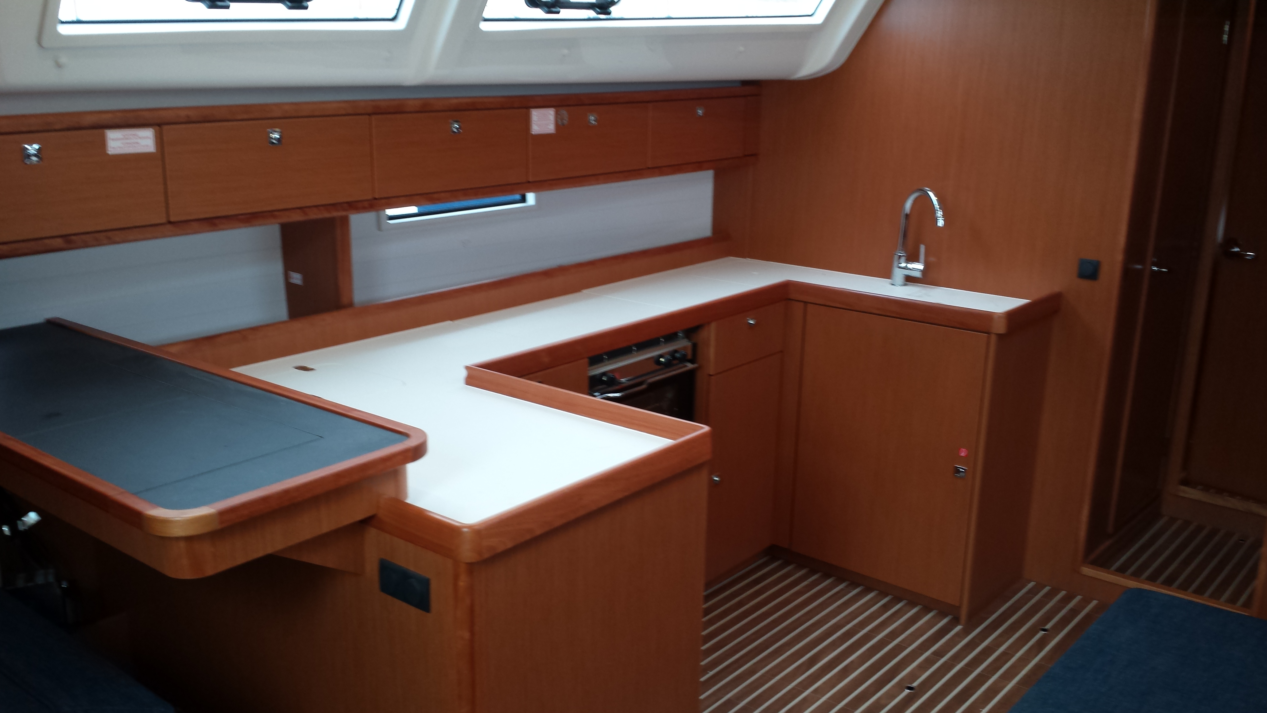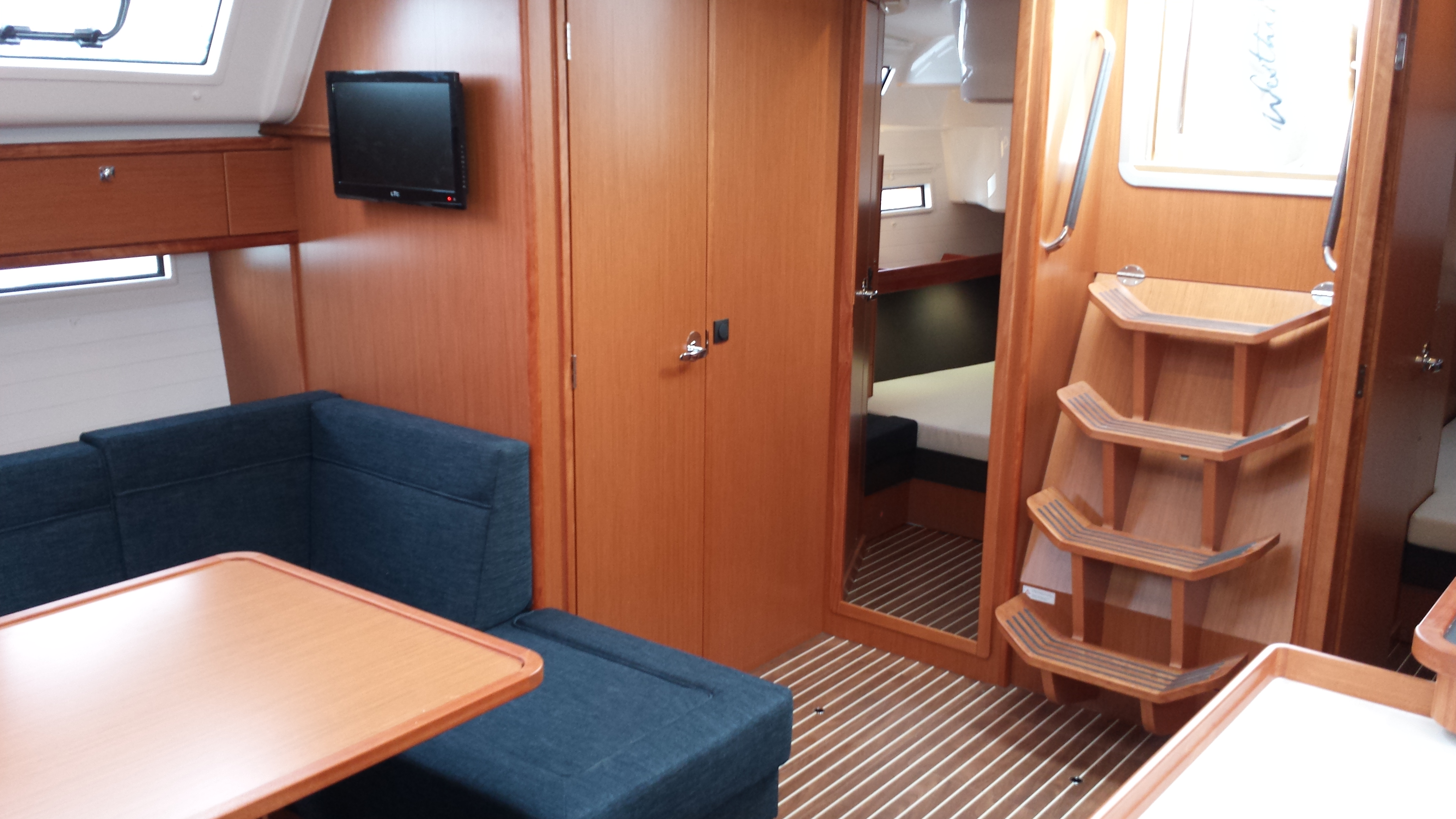 | Navigation | Barometer, Fernglas, GPS mit Kartenplotter im Cockpit, Hafenhandbücher, Handpeilkompass, Navigationsbesteck, Seekarten, Tridata (Log, Echolot, Windm.) |