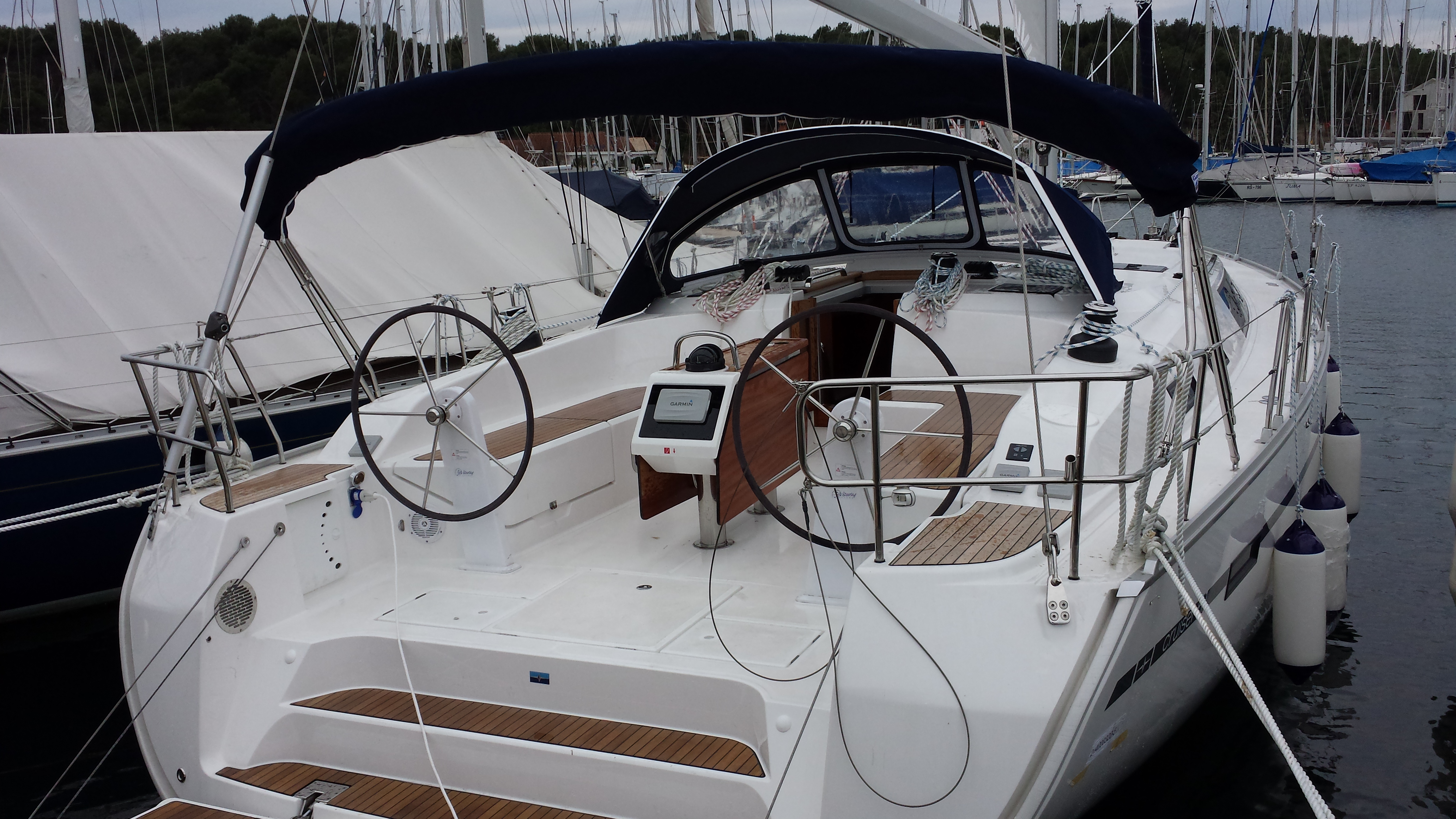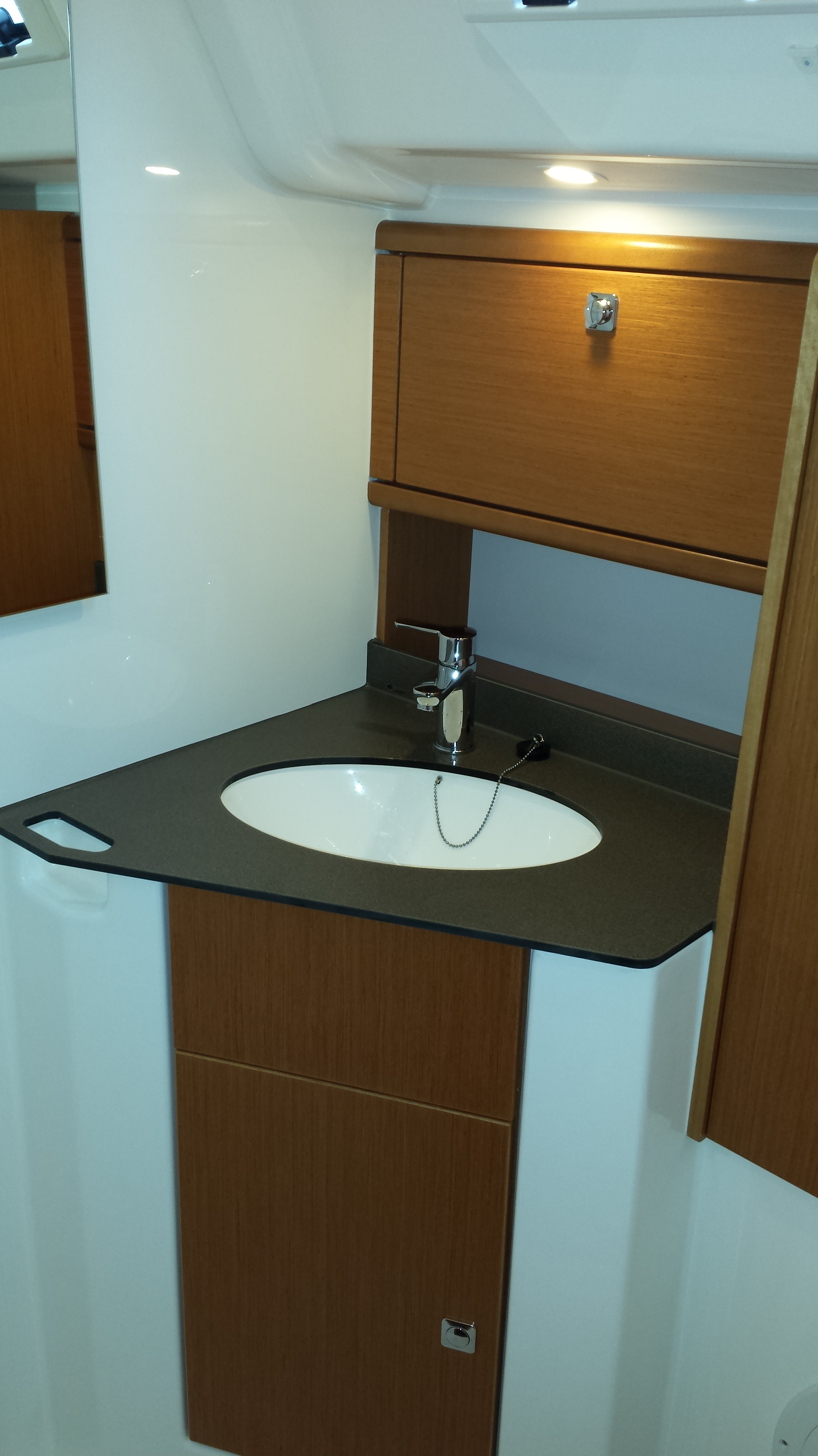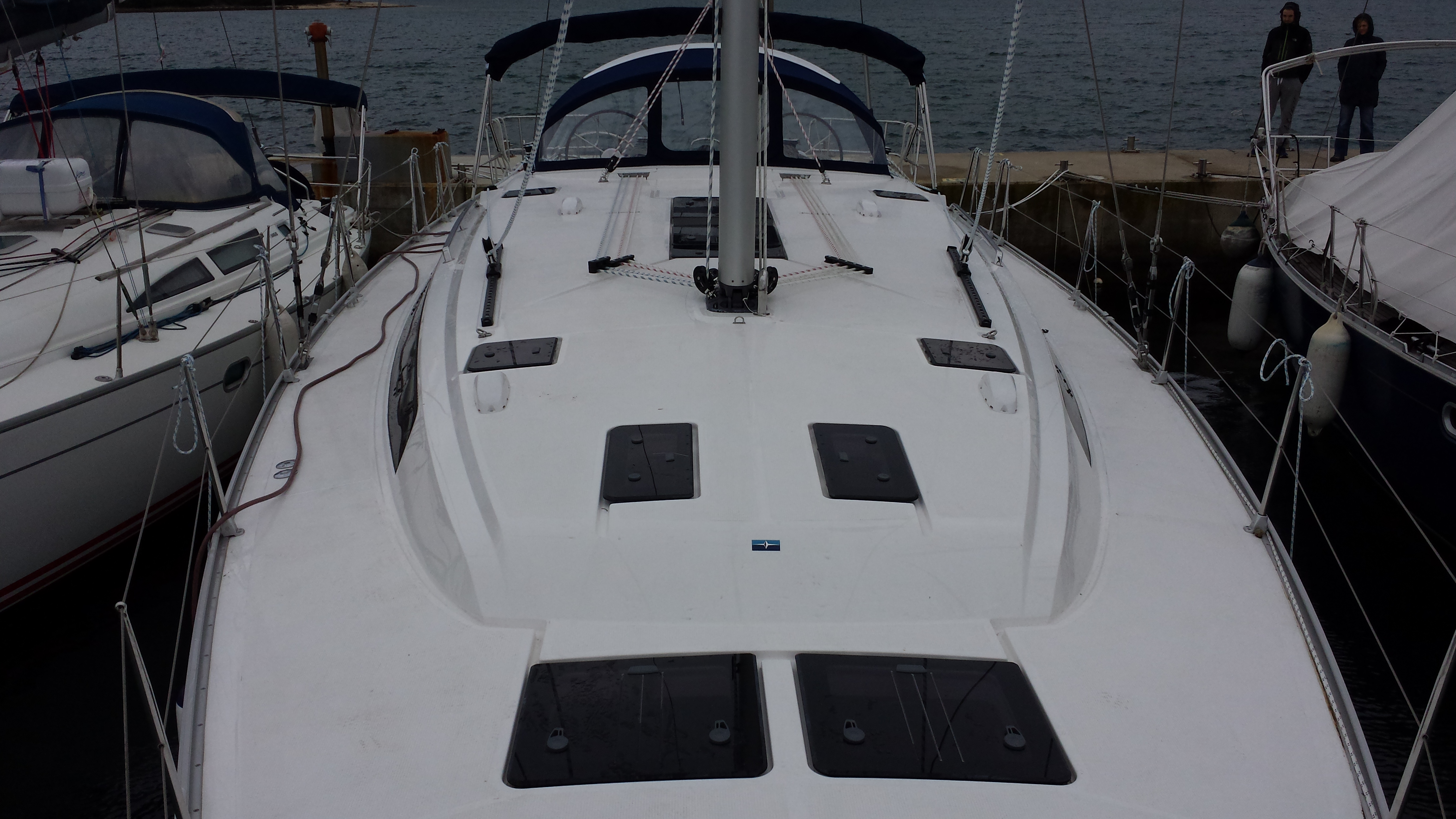 | Outside | Anker mit Kette, Ankerwinsch, Badeplattform, Biminitop, Bootshaken, Cockpitdusche, Cockpitlautsprecher, Deckbürste, Dieselkanister , elektr. Ankerwinsch, Fender, Fernsteuerung für elektr. Ankerwinsch, Gangway, Kunststoff-Eimer (Pütz), Sprayhood, Wasserkanister , Wasserschlauch, Windex |