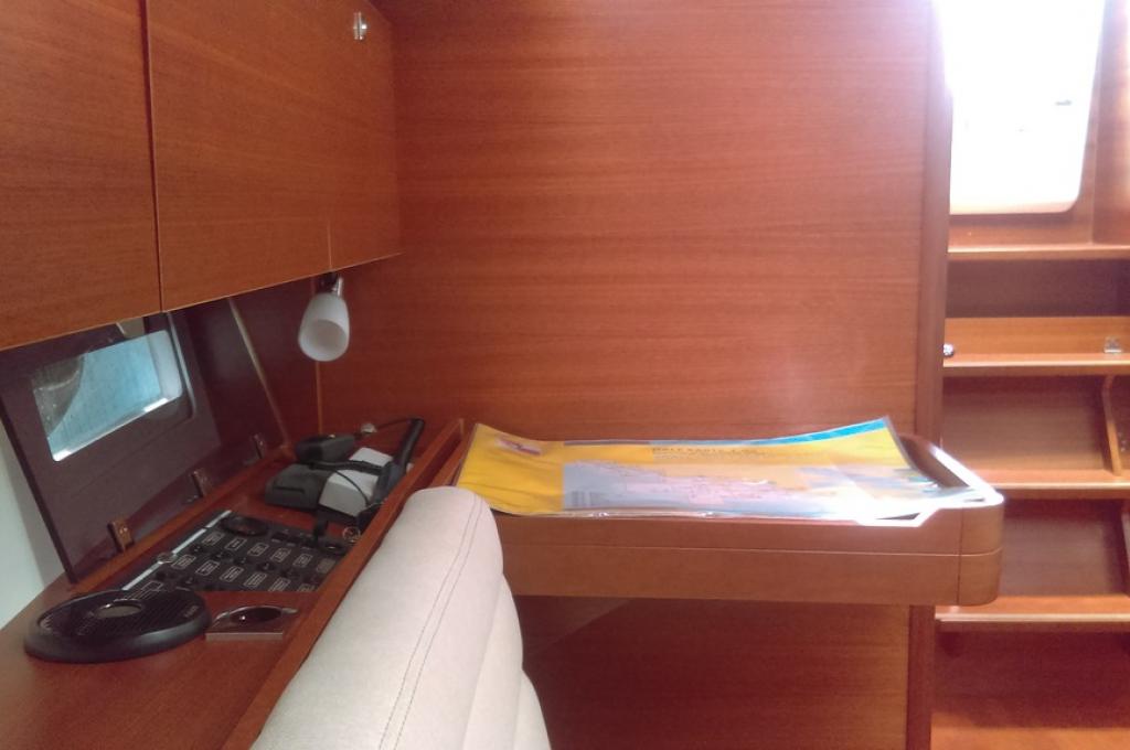 | Navigation | Barometer, Fernglas, GPS mit Kartenplotter im Cockpit, Hafenhandbücher, Handpeilkompass, Navigationsbesteck, Seekarten, Tridata (Log, Echolot, Windm.) |