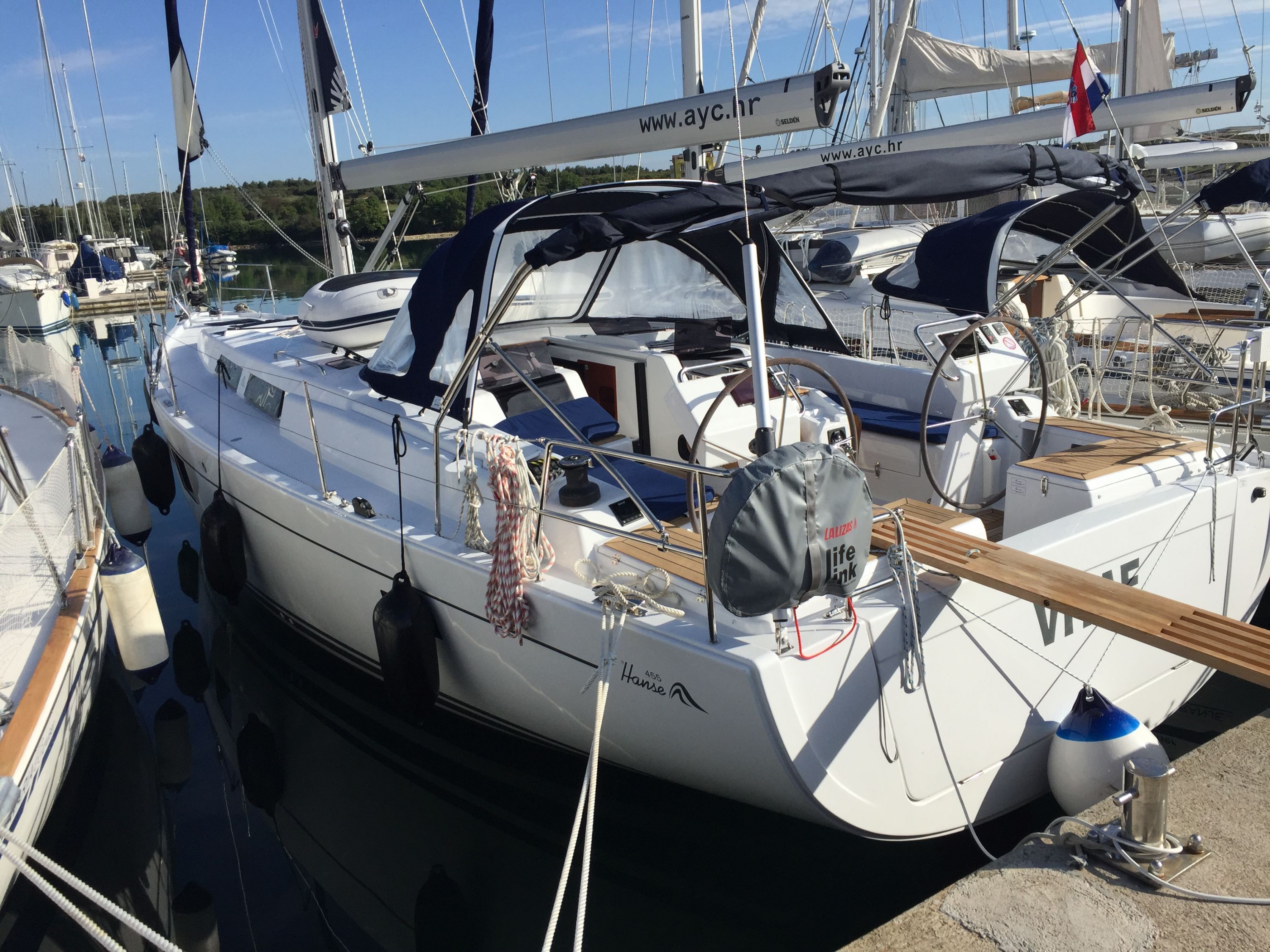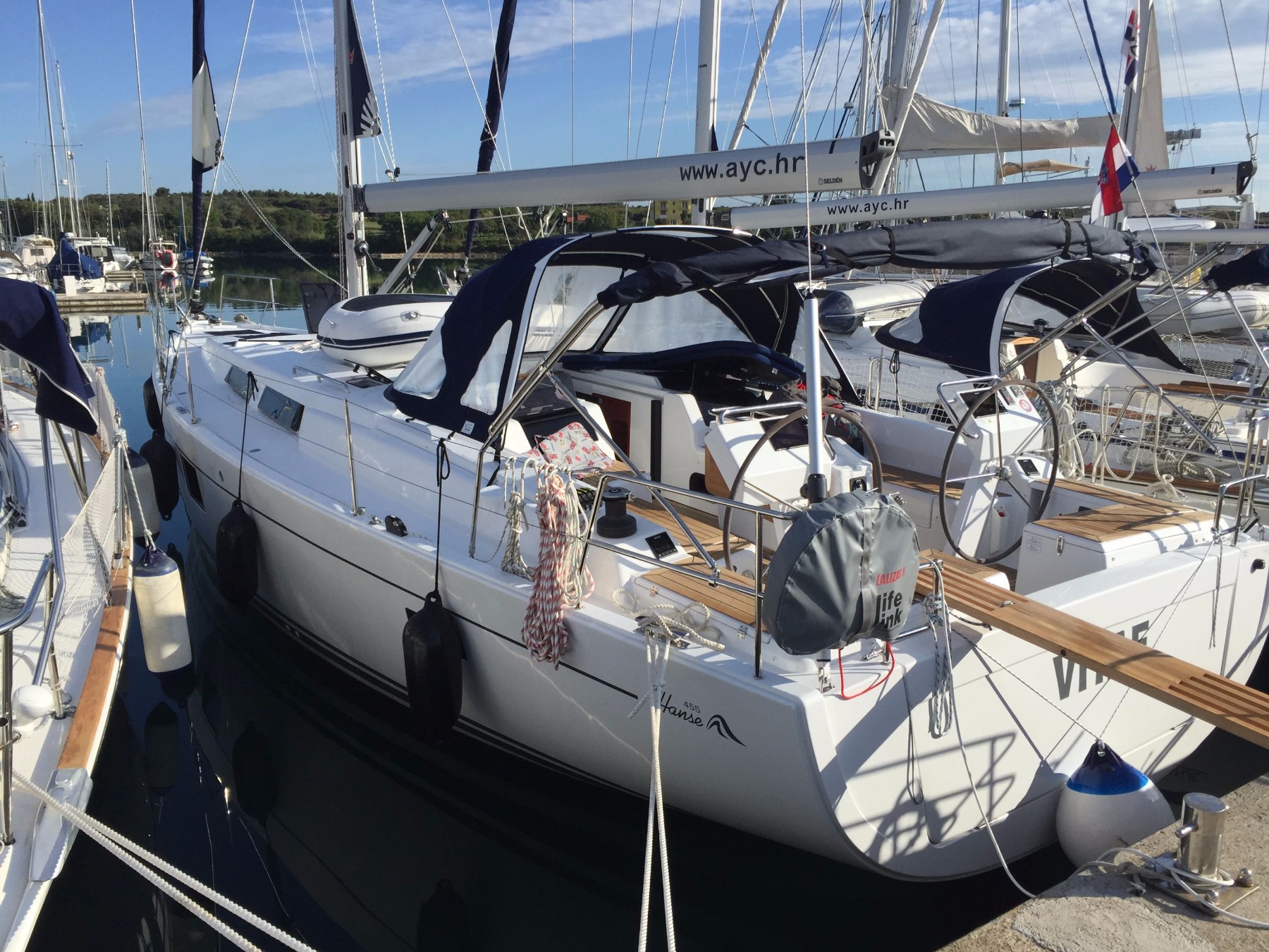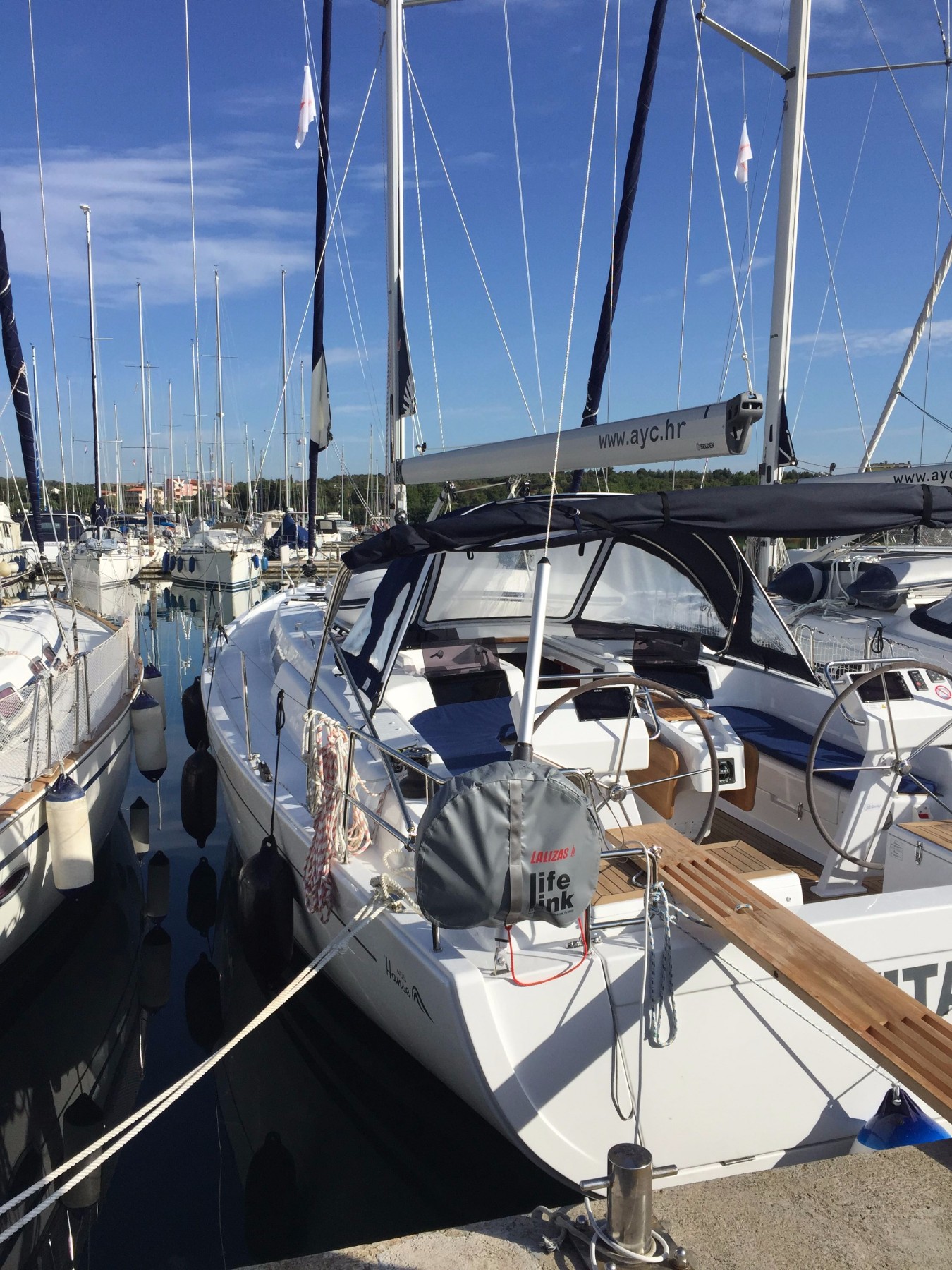 | Safety | Autopilot, Bootsmannstuhl, Bordapotheke, Bordwerkzeug, Bugstrahlruder, elektr. Bilgepumpe, Feststoffschwimmwesten, Feuerlöscher, Navigationslichter, Nebelhorn, Notpinne, Notsignale, Radarreflektor, Rettungsinsel, Taschenlampe, UKW-Funk, Zweitanker |
