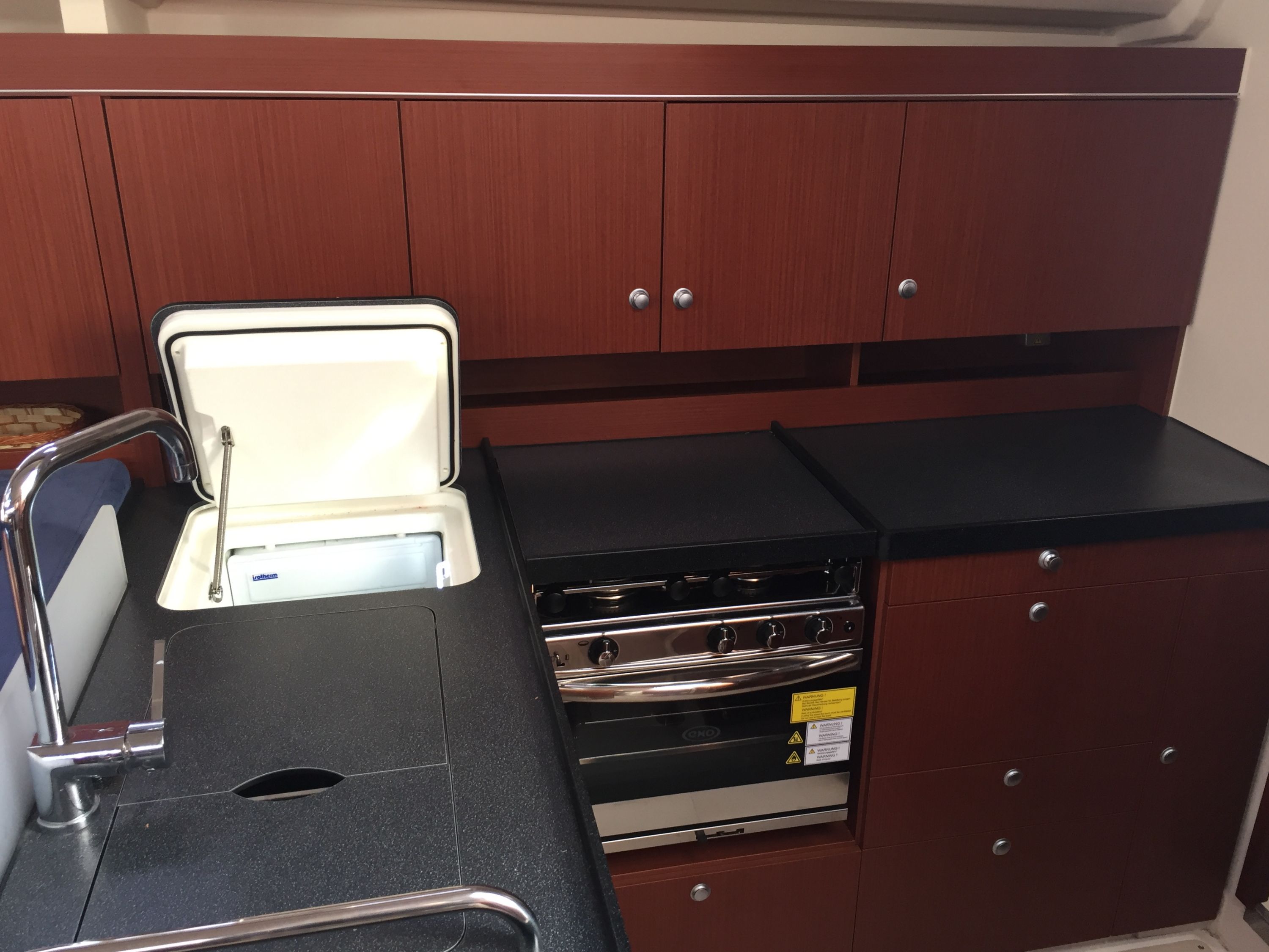| Inside | Borduhr, elektr. Druckwasserpumpe, Heizung, Klimaanlage (Landstrom), Kühlschrank, Ladegerät, Landstromkabel, LCD Fernseher, Luftpumpe für Beiboot, Radio mit CD oder MP3, Trichter, Warmwasser |