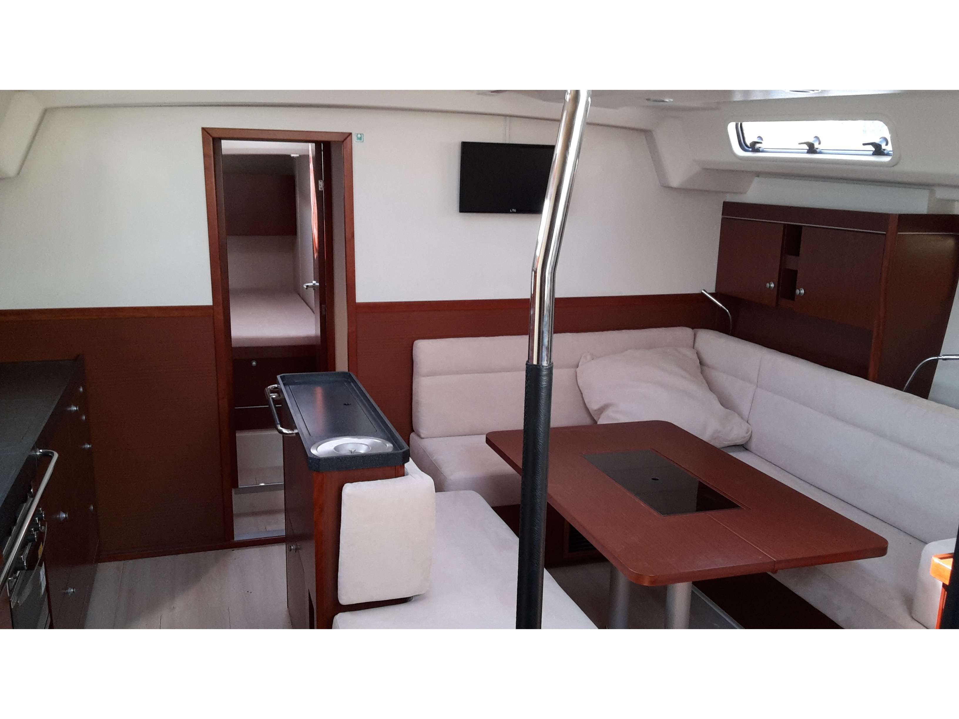 Borduhr, elektr. Druckwasserpumpe, Heizung, Klimaanlage (Landstrom), Kühlschrank, Ladegerät, Landstromkabel, LCD Fernseher + DVD, Luftpumpe für Beiboot, Radio mit CD oder MP3, Salontisch absenkbar, Trichter, Warmwasser |
