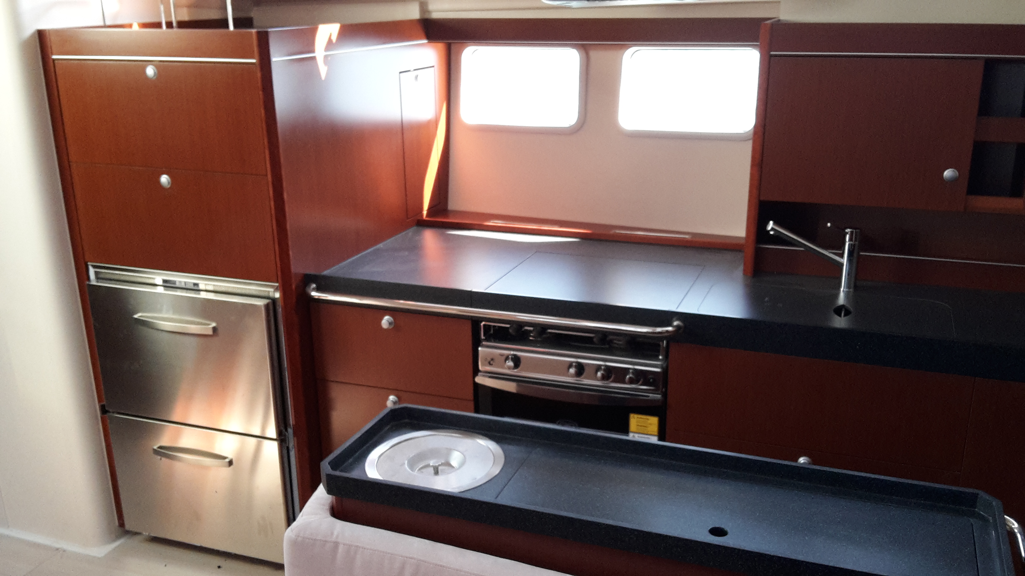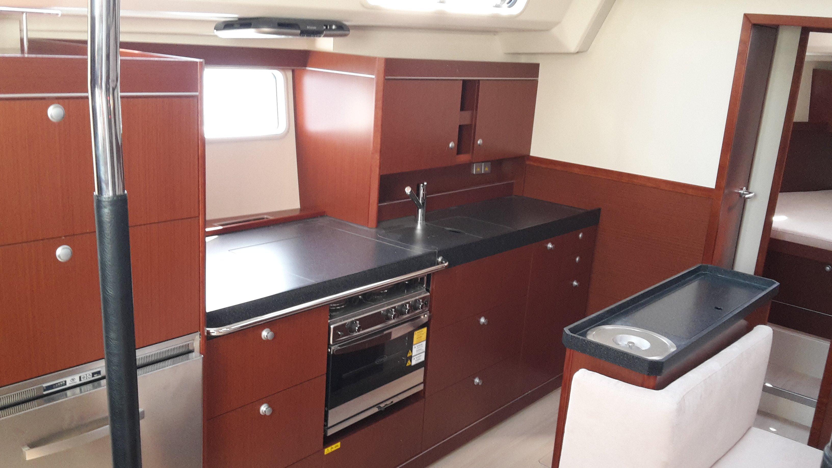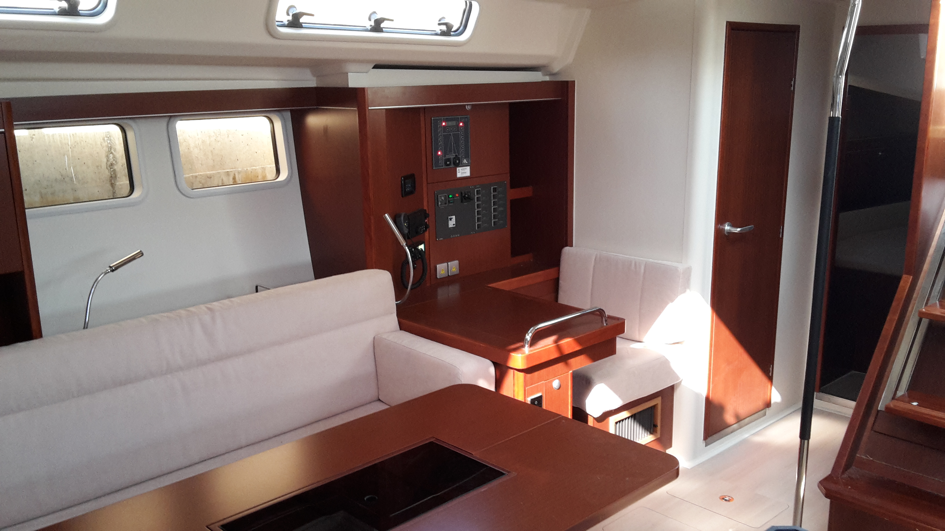 Autopilot, Bootsmannstuhl, Bordapotheke, Bordwerkzeug, Bugstrahlruder, elektr. Bilgepumpe, Feststoffschwimmwesten, Feuerlöscher, Navigationslichter, Nebelhorn, Notpinne, Notsignale, Radarreflektor, Rettungsinsel, Taschenlampe, UKW-Funk, Zweitanker |