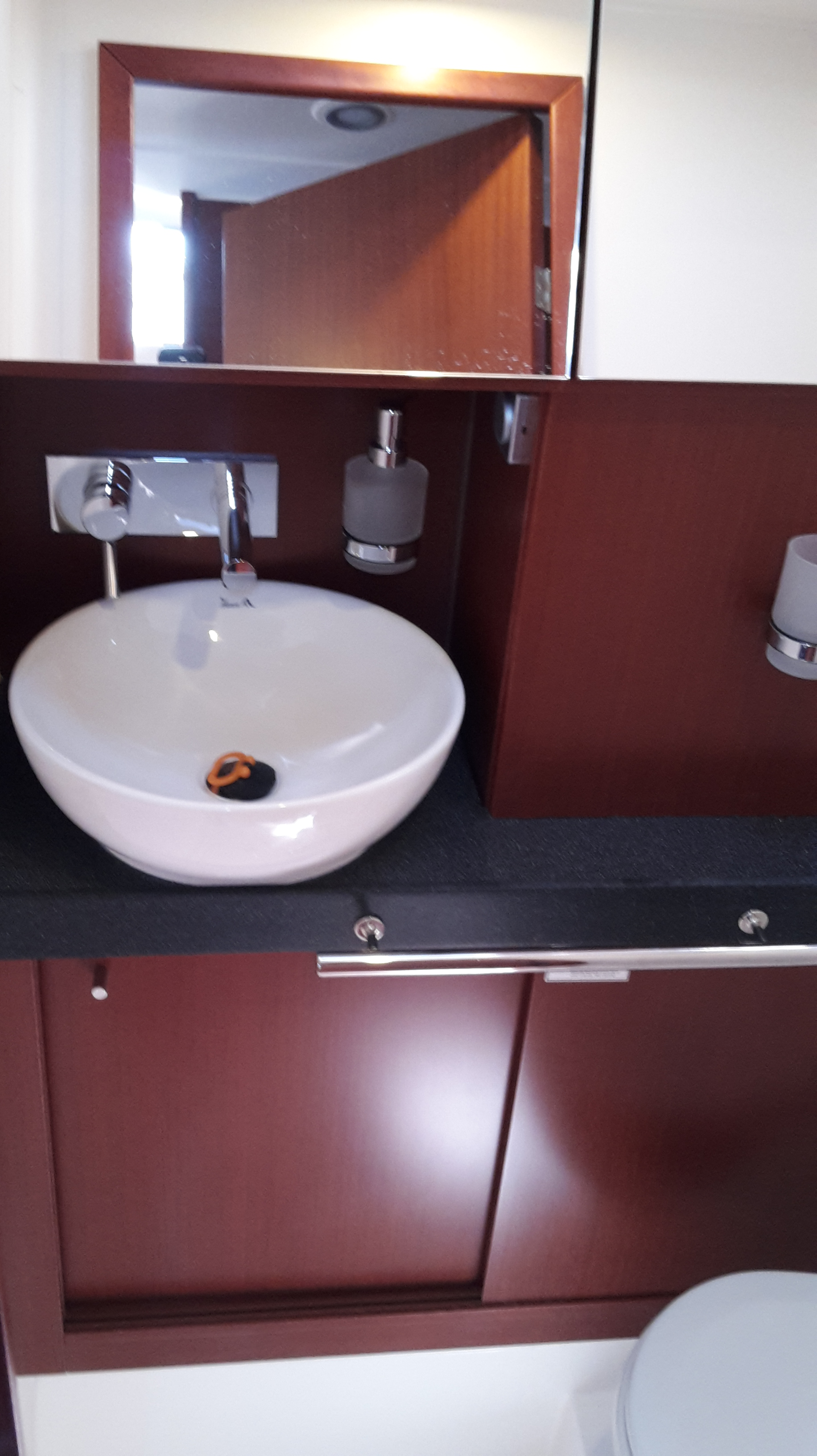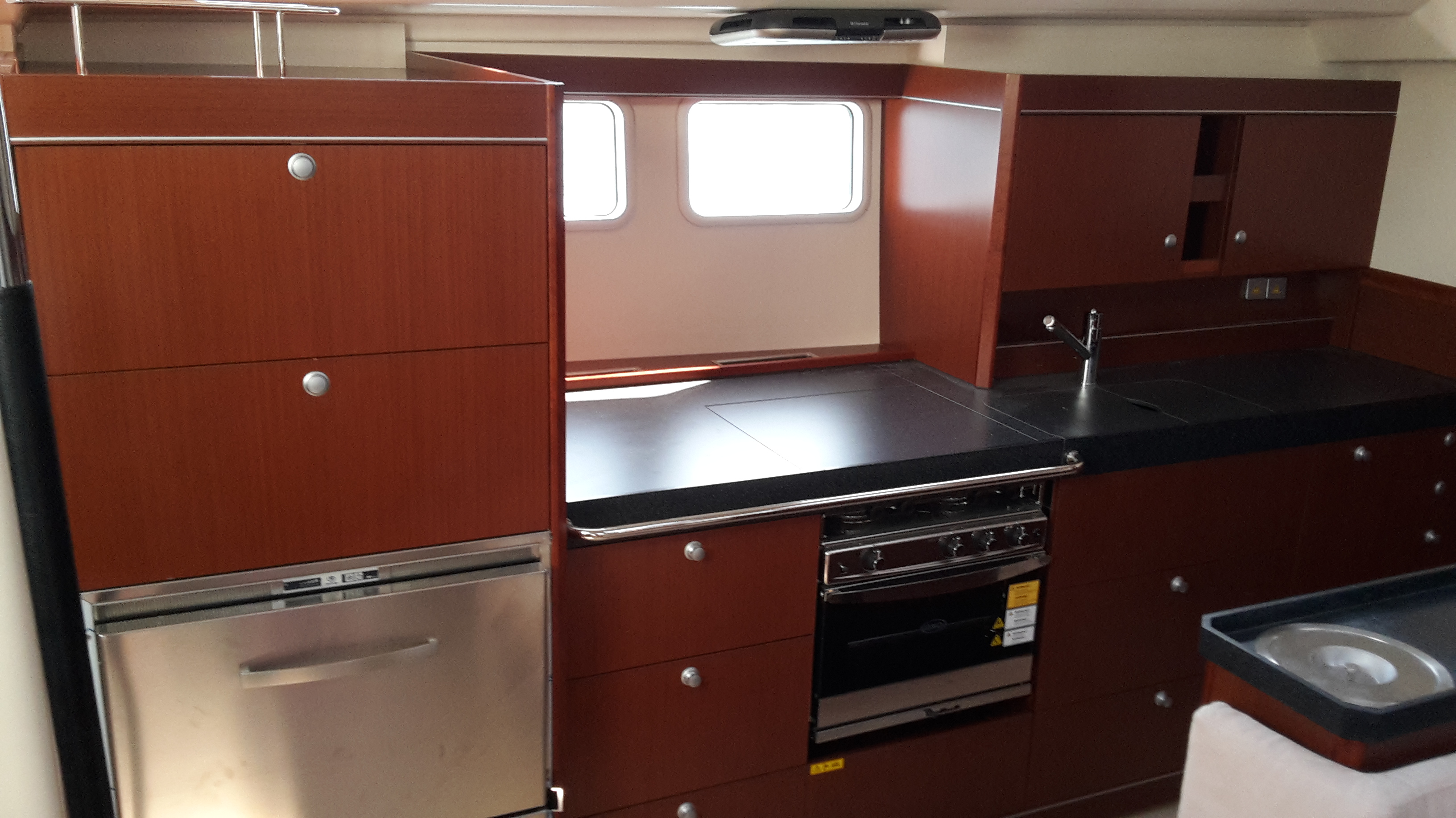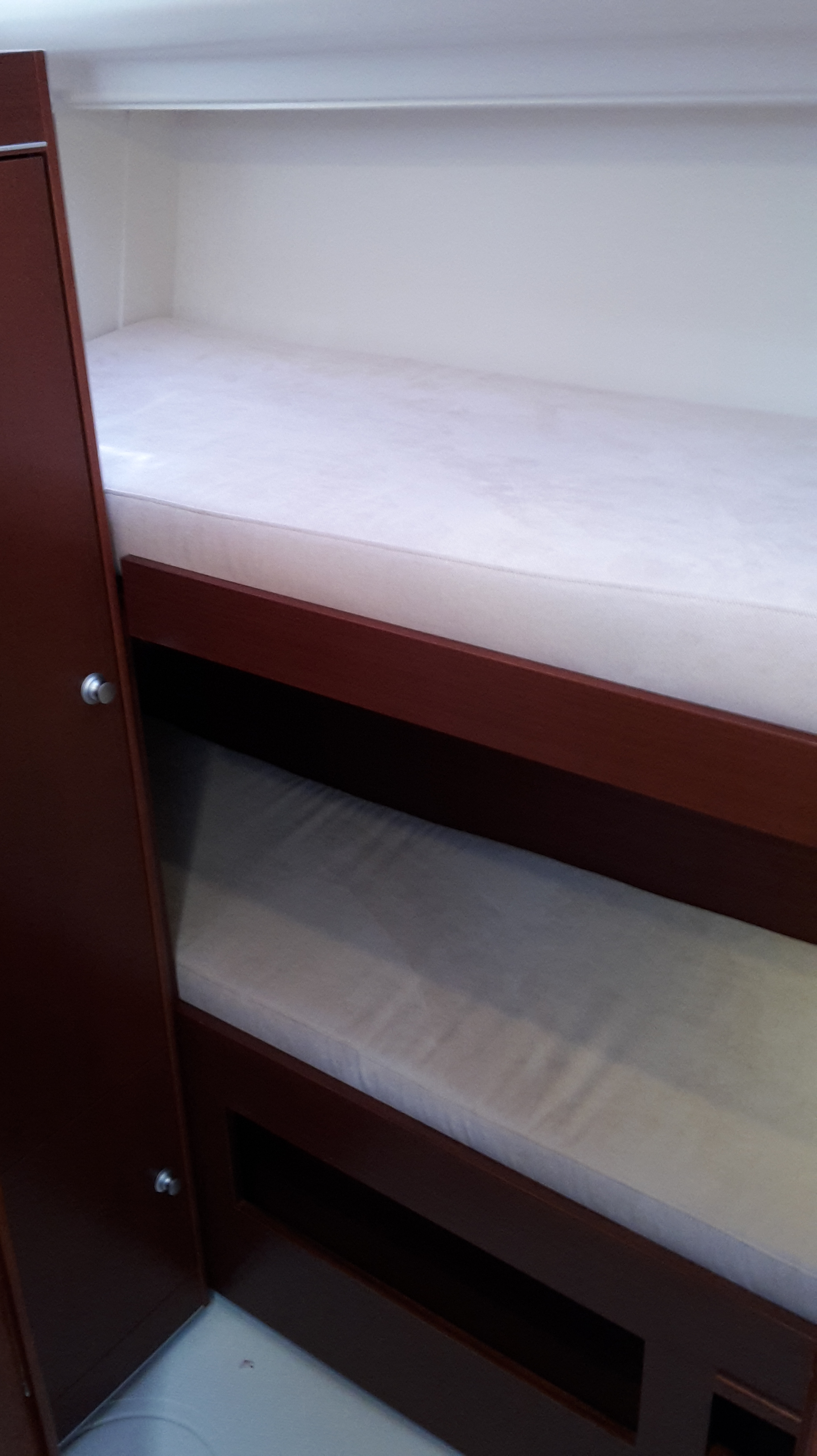 Autopilot, Bootsmannstuhl, Bordapotheke, Bordwerkzeug, Bugstrahlruder, elektr. Bilgepumpe, Feststoffschwimmwesten, Feuerlöscher, Navigationslichter, Nebelhorn, Notpinne, Notsignale, Radarreflektor, Rettungsinsel, Taschenlampe, UKW-Funk, Zweitanker |