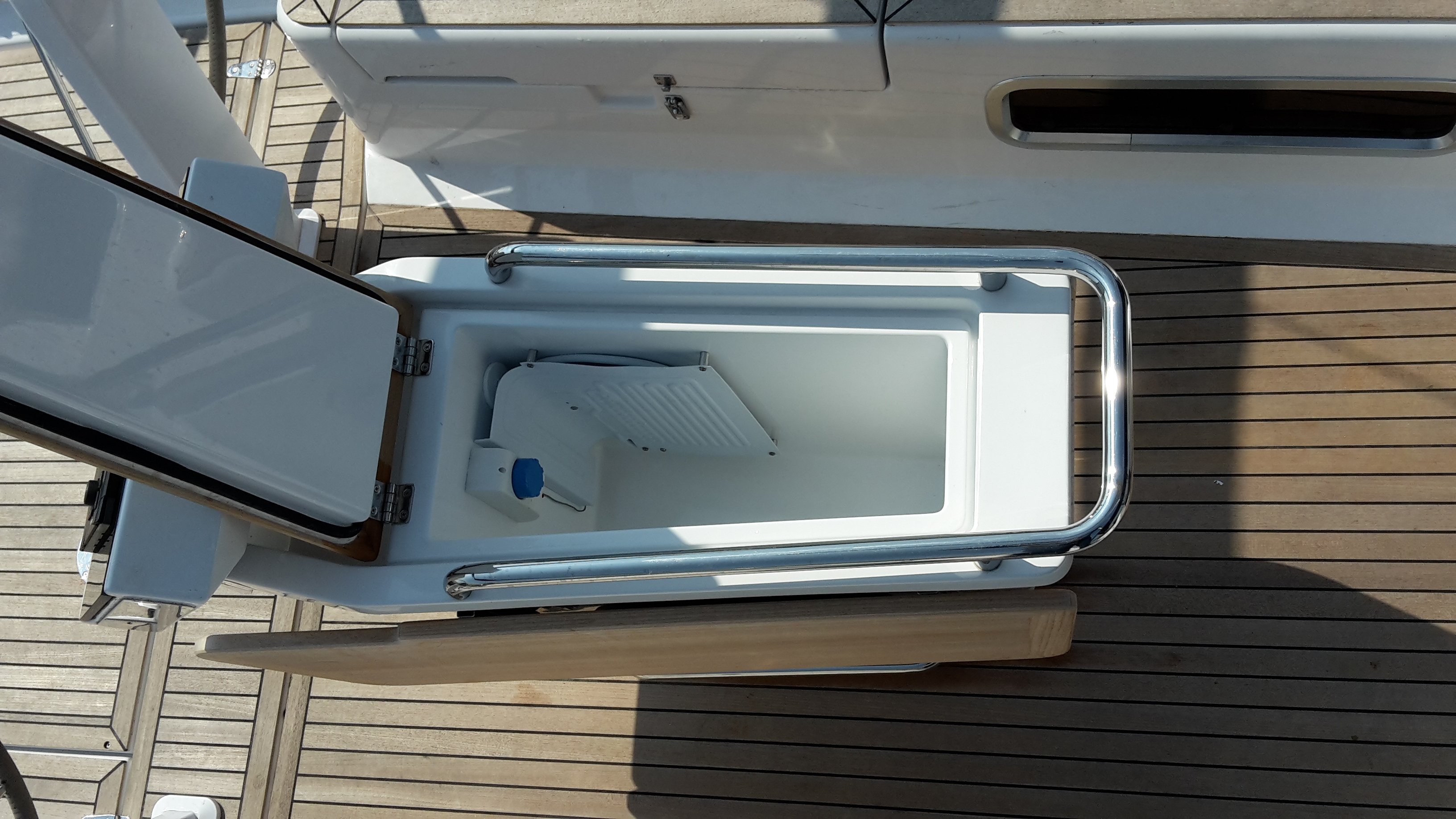 Anker mit Kette, Ankerwinsch, Badeplattform, Biminitop, Bootshaken, Cockpitdusche, Cockpitlautsprecher, Deckbürste, Dieselkanister , elektr. Ankerwinsch, Fender, Fernsteuerung für elektr. Ankerwinsch, Gangway, Kunststoff-Eimer (Pütz), Sprayhood, Wasserkanister , Wasserschlauch, Windex |