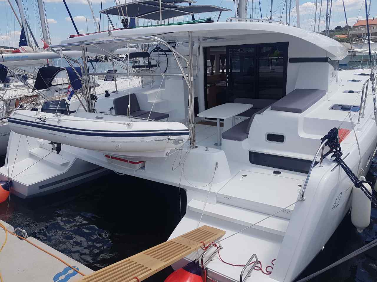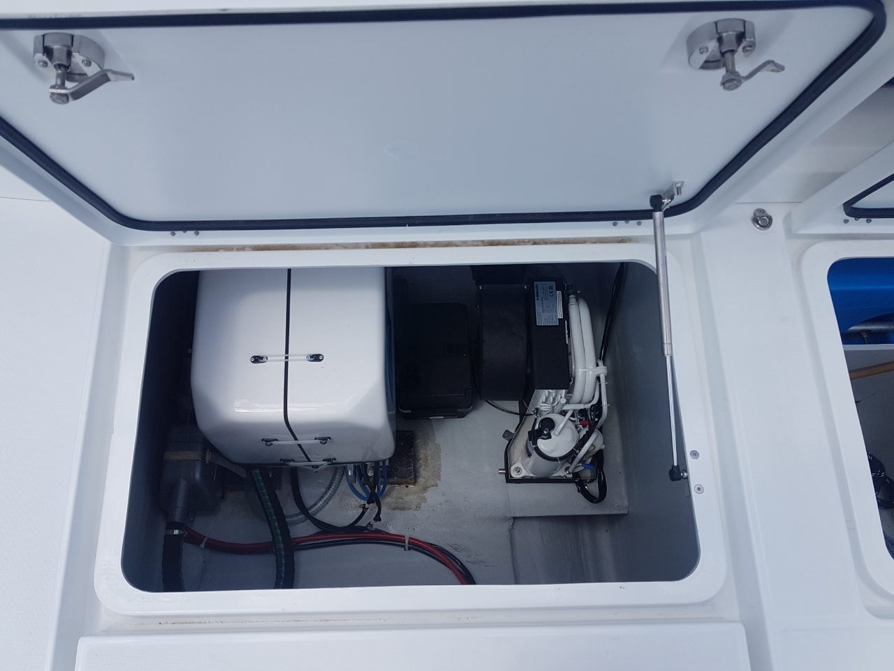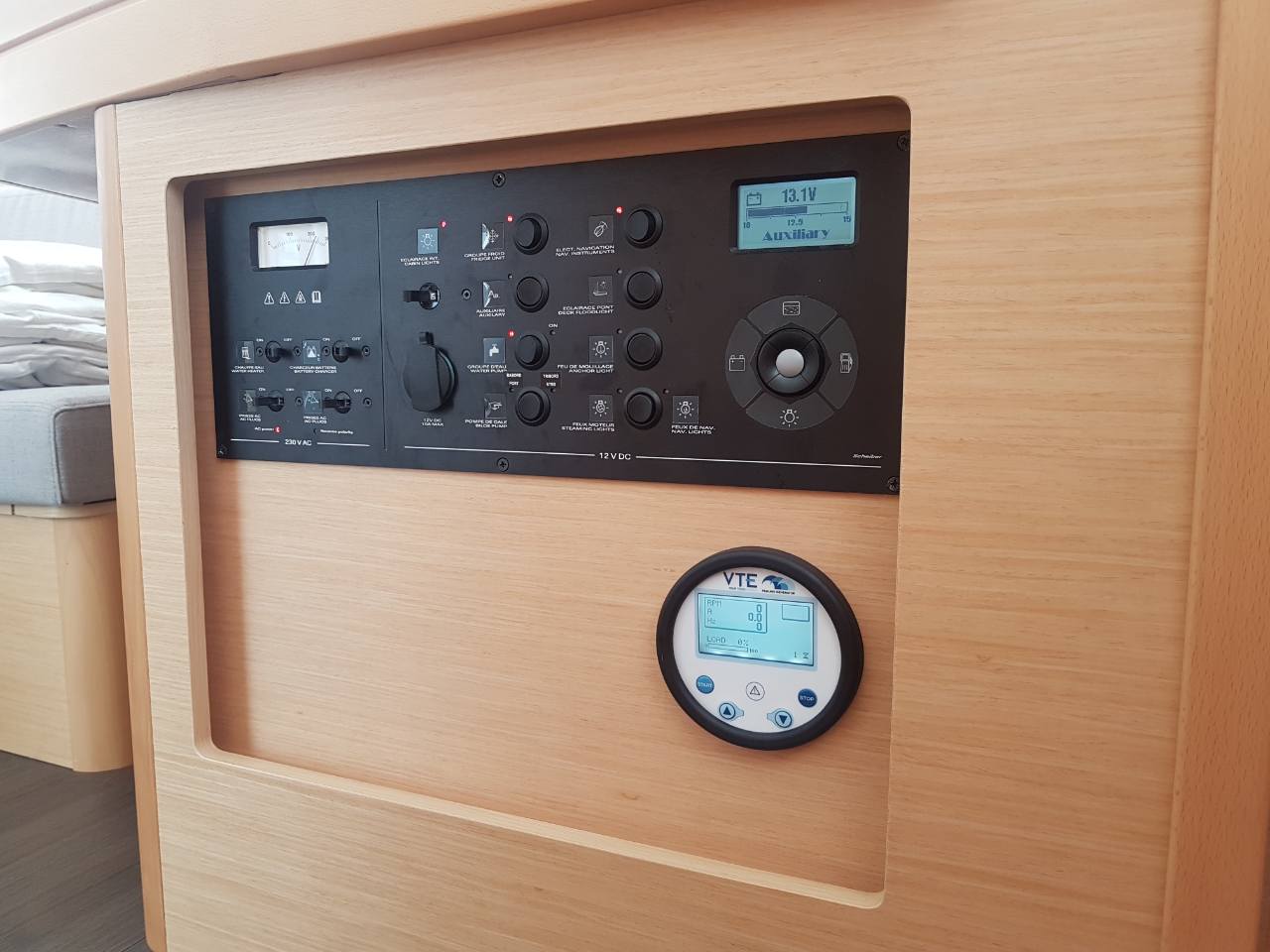 Borduhr, elektr. Druckwasserpumpe, Generator, Heizung, Klimaanlage (ohne Landstrombedarf), Kühlschrank, Ladegerät, Landstromkabel, LCD Fernseher + DVD, Luftpumpe für Beiboot, Radio mit CD oder MP3, Salontisch absenkbar, Trichter, TV, Warmwasser |