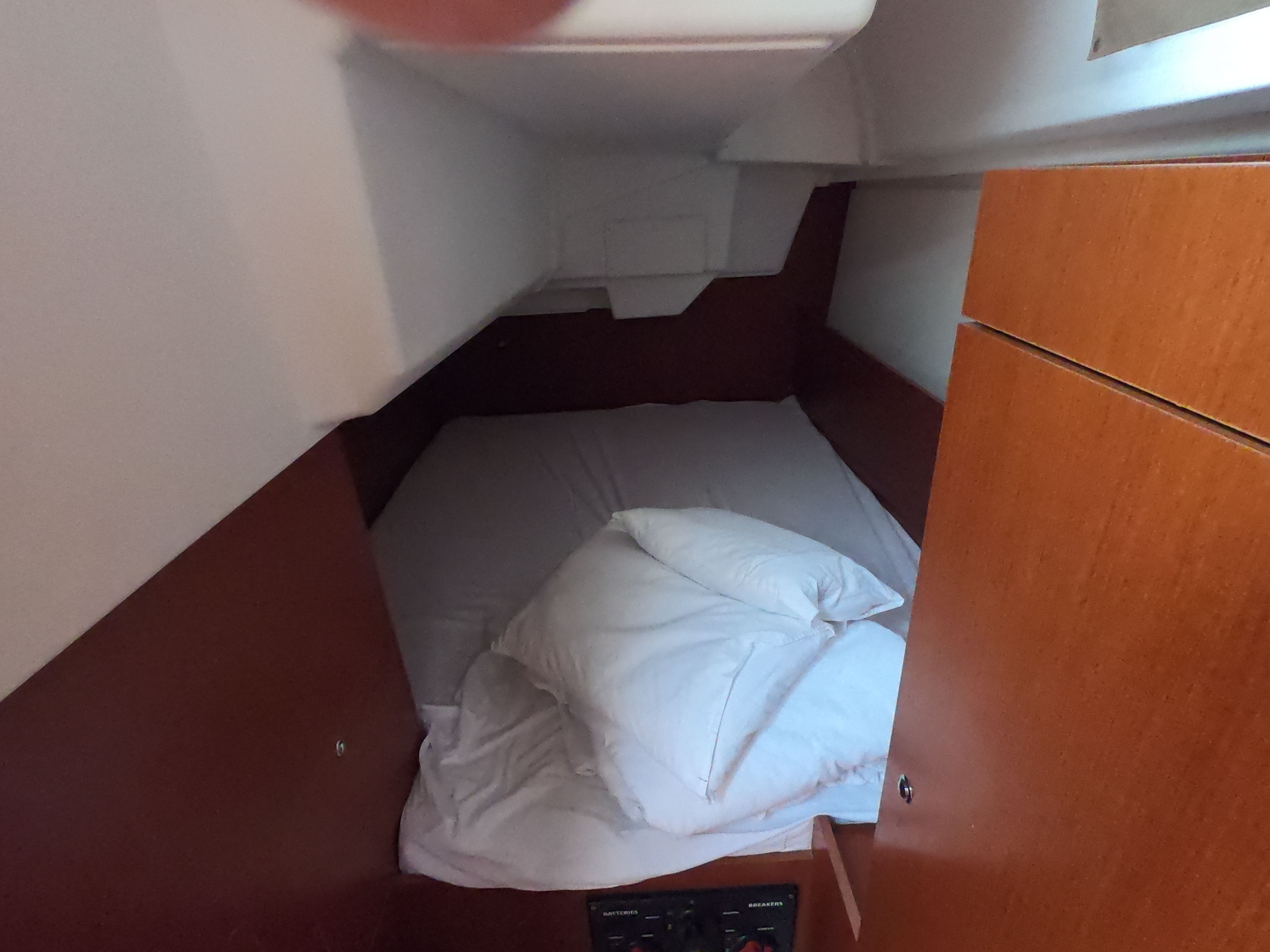 | Safety | Autopilot, Bootsmannstuhl, Bordapotheke, Bordwerkzeug, elektr. Bilgepumpe, Feststoffschwimmwesten, Feuerlöscher, Navigationslichter, Nebelhorn, Notpinne, Notsignale, Radarreflektor, Taschenlampe, UKW-Funk, Zweitanker |