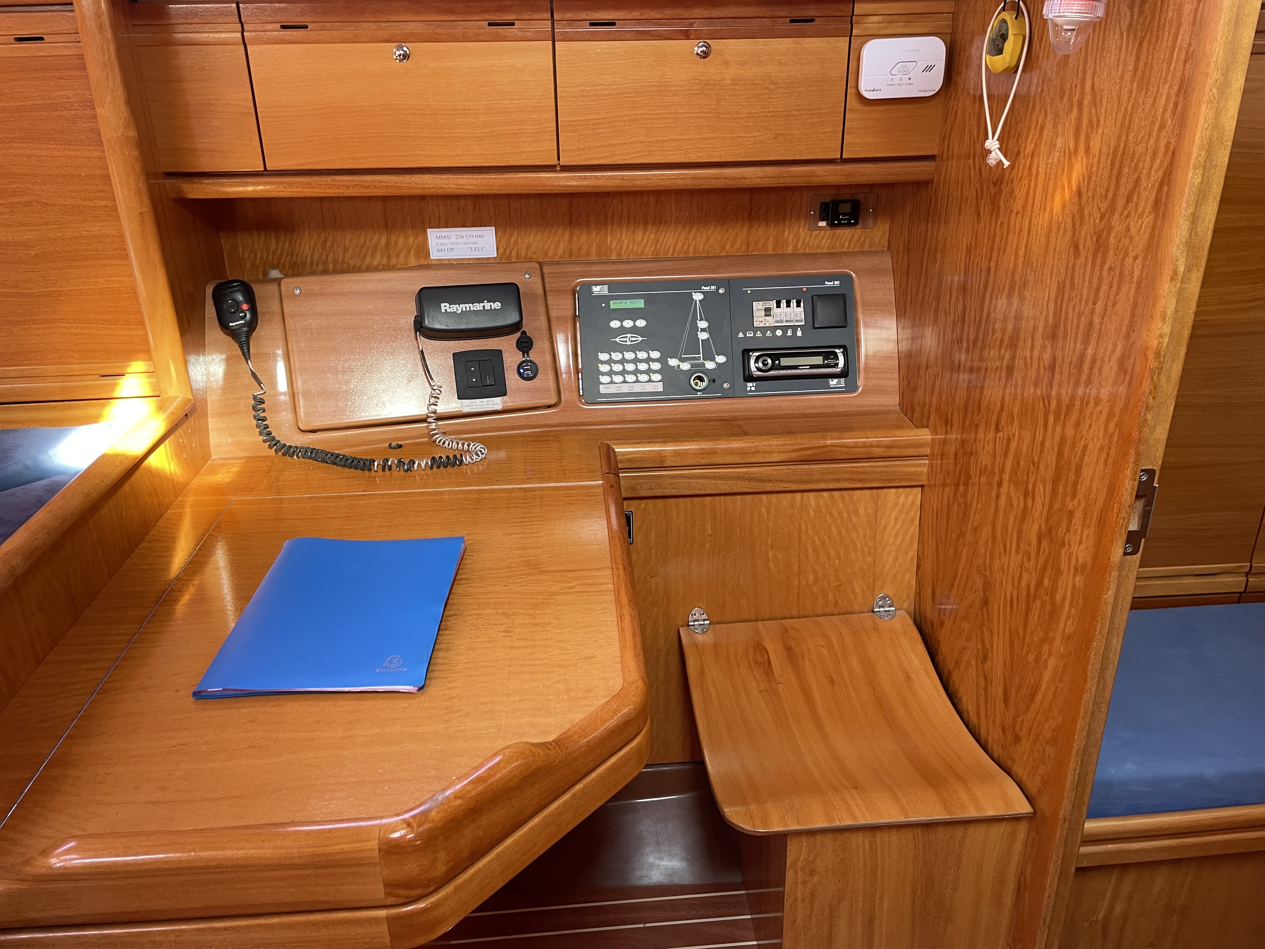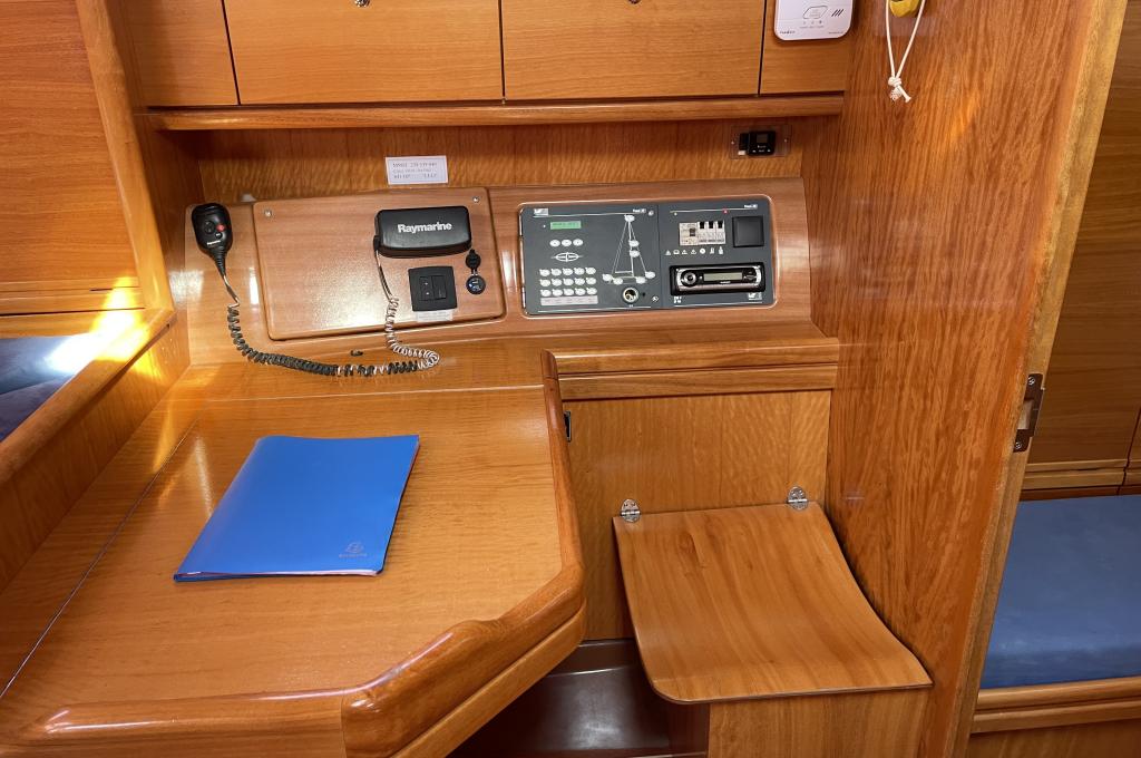 | Navigation | Echolot, Fernglas, GPS mit Kartenplotter im Cockpit, Hafenhandbücher, Handpeilkompass, Navigationsbesteck, Seekarten, Sumlog, Windmesser |