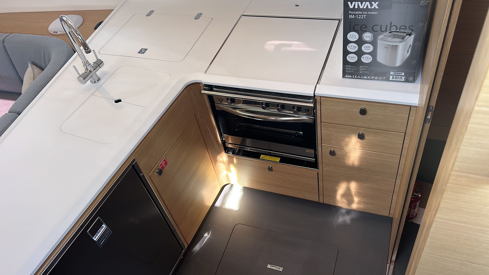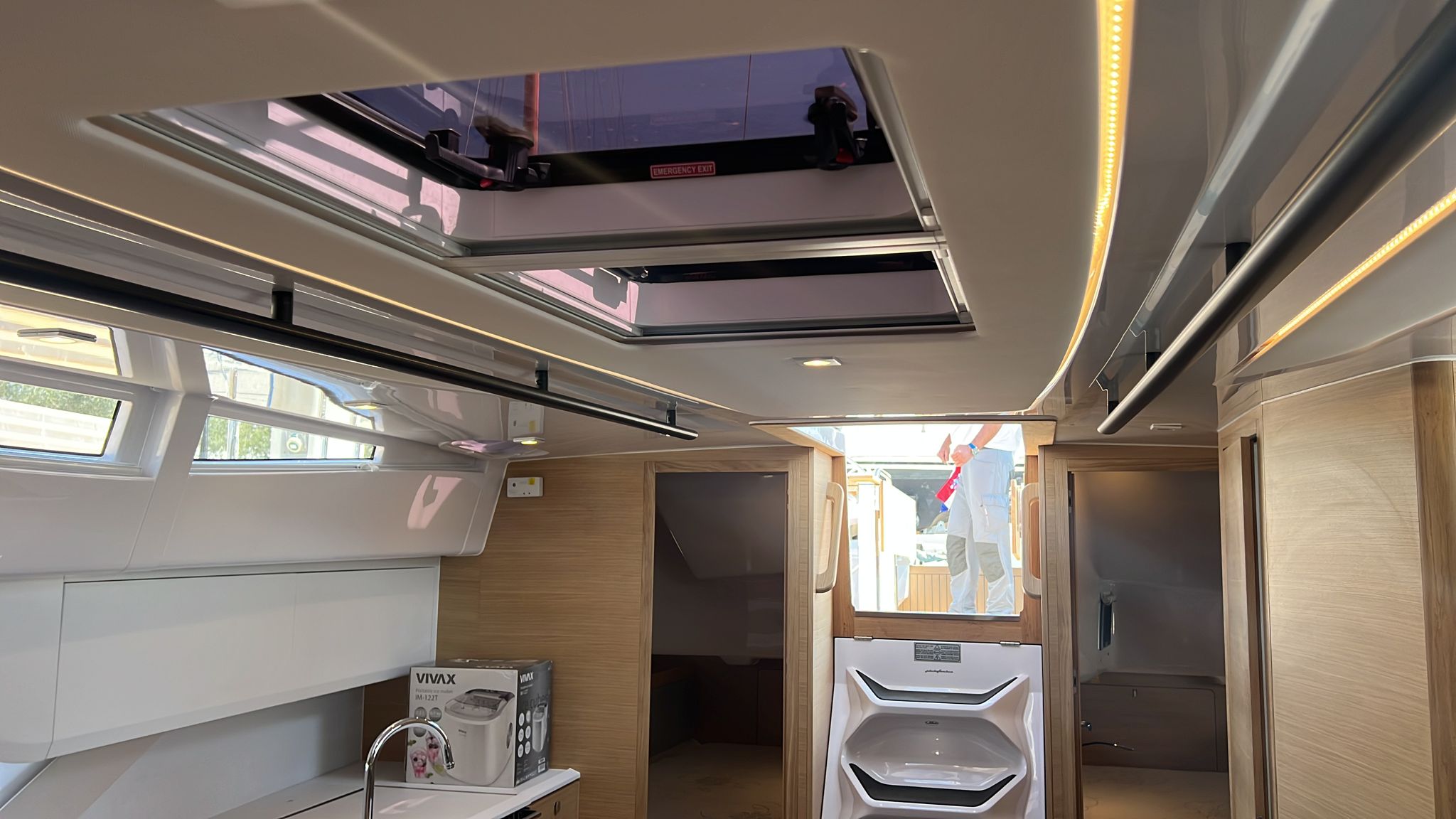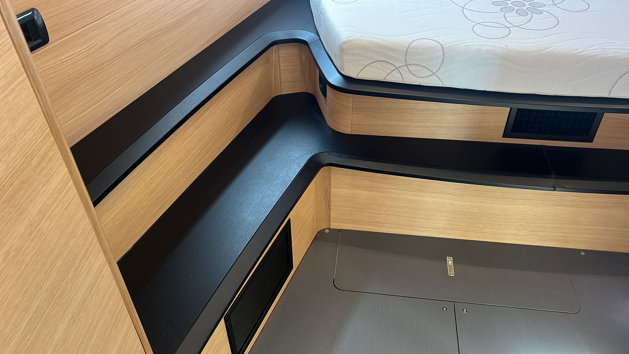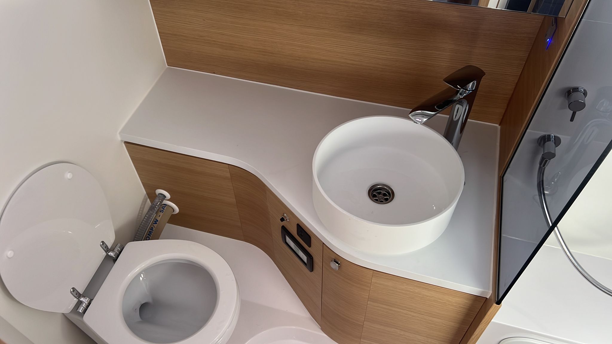 | Inside | Backofen, Dusche, Herd, Inverter 12V/220V, Klimaanlage (Landstrom), Kühlschrank, LED-Innenleuchten, Pantryausstattung, Radio mit USB und Bluetooth, Spülbecken, Warmwasser, WC (elektr.) |