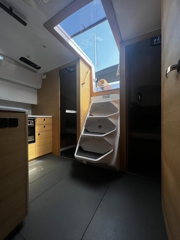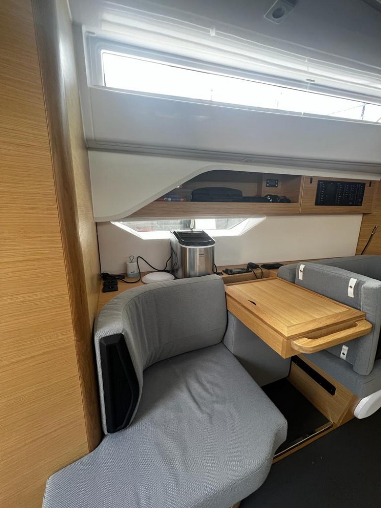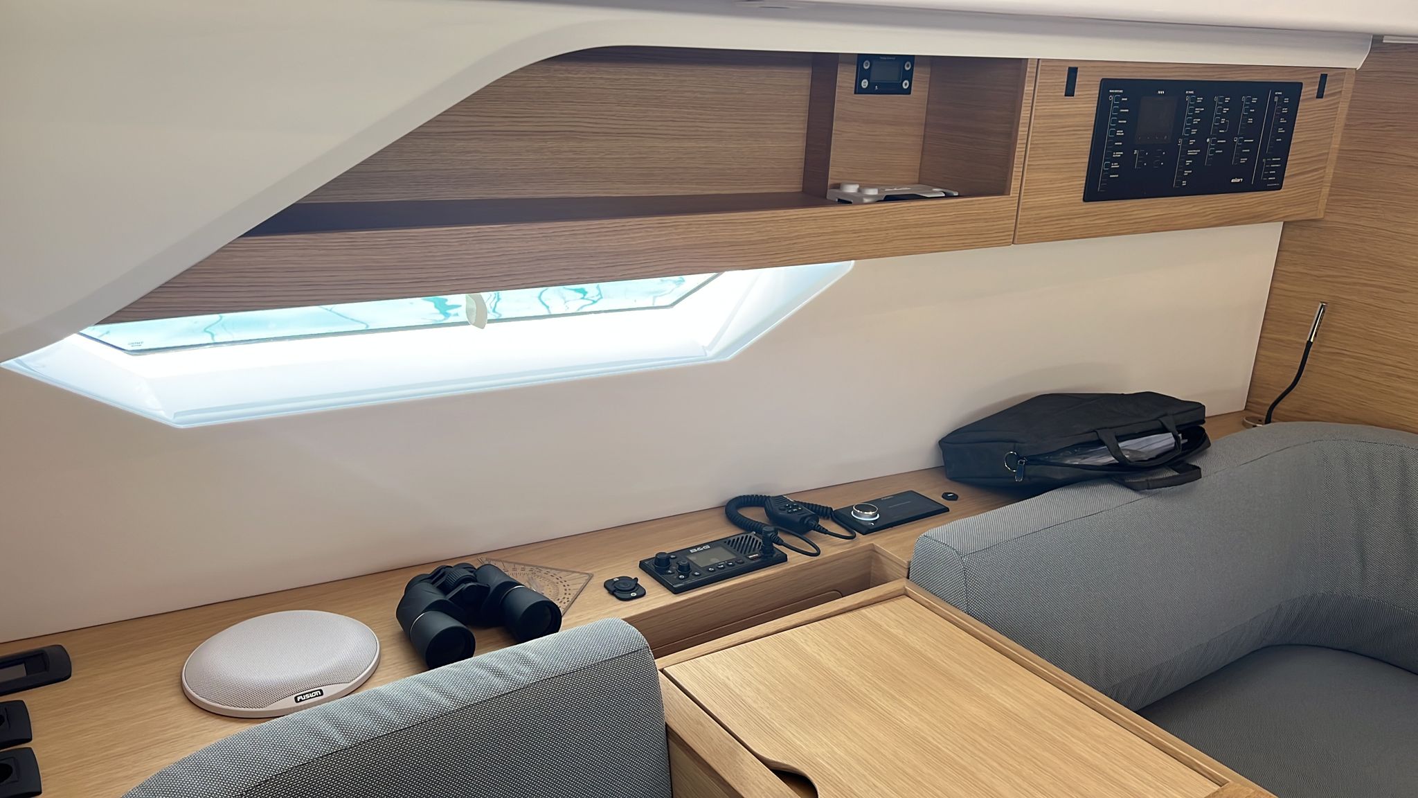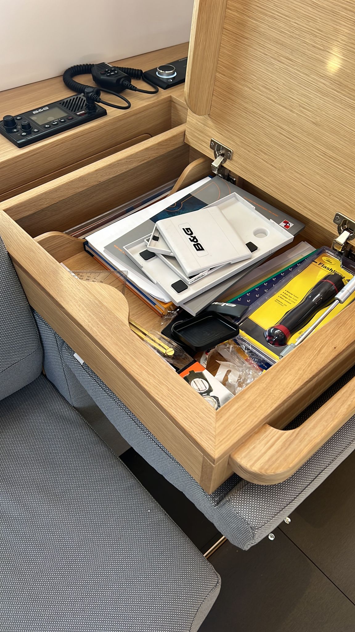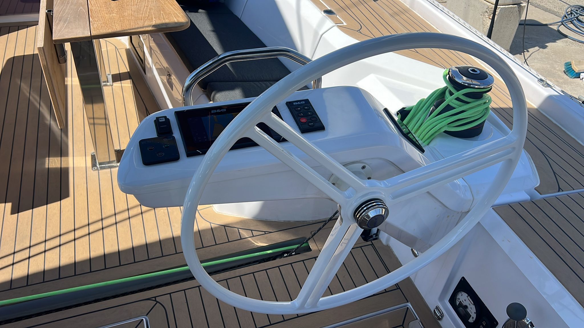| Navigation | Echolot, GPS mit Kartenplotter im Cockpit, GPS mit Kartenplotter im Salon, Sumlog, Tridata (Log, Echolot, Windm.), Windmesser |