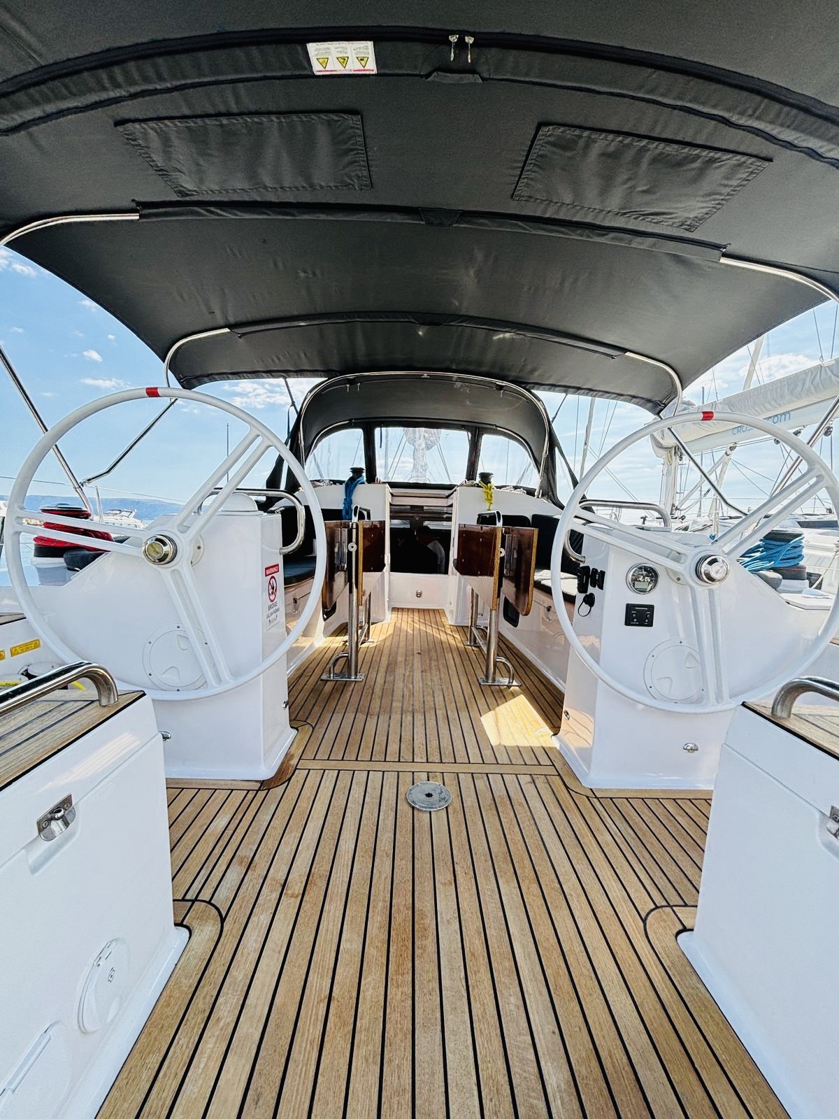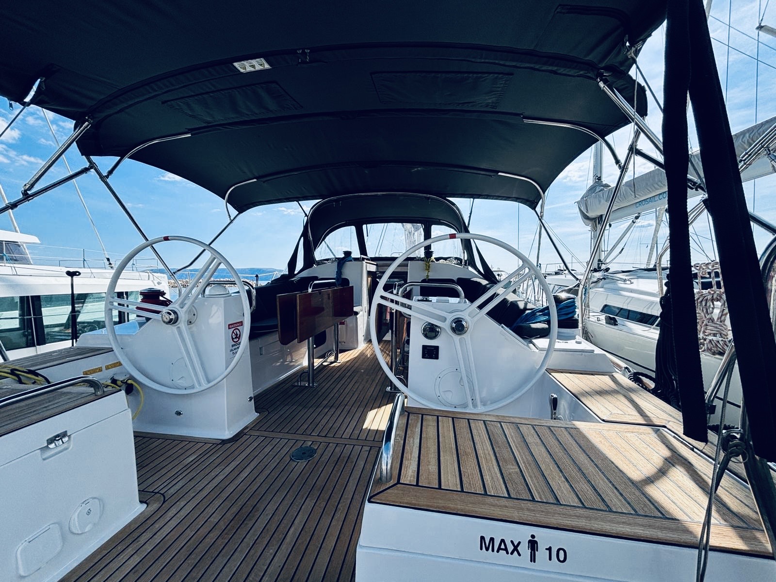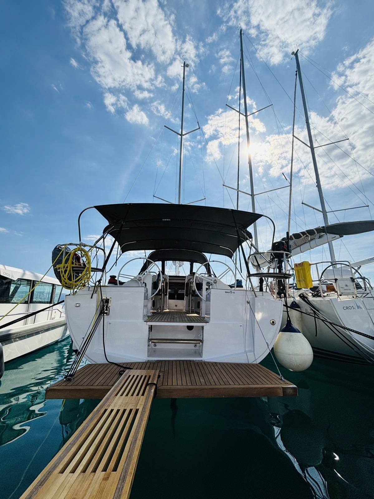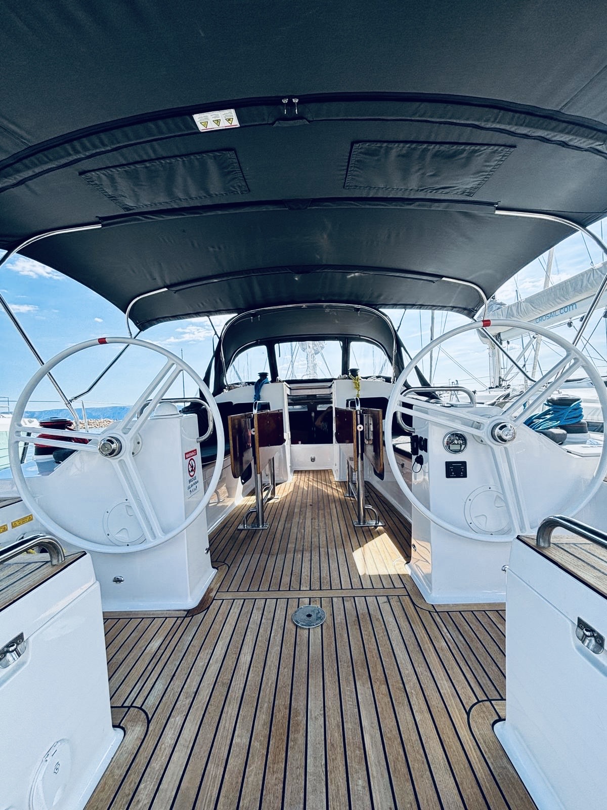 | Outside | Badeplattform, Biminitop, Cockpitlautsprecher, elektr. Ankerwinsch, Grill, Heckdusche, Teak im Cockpit |