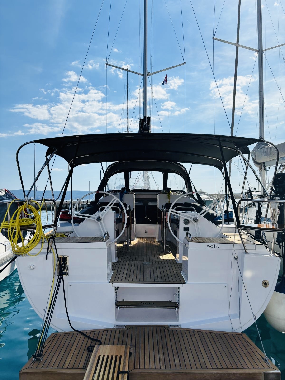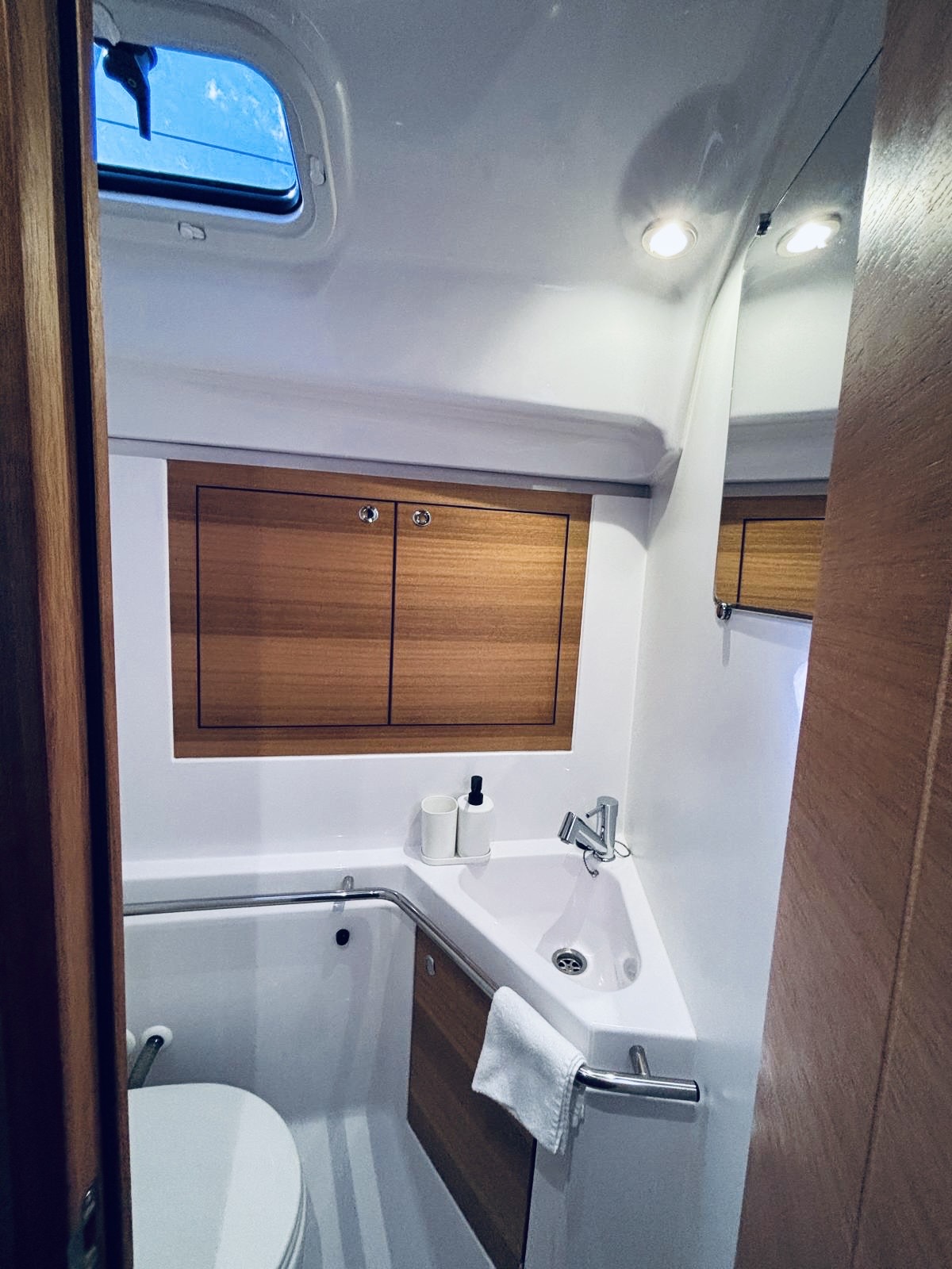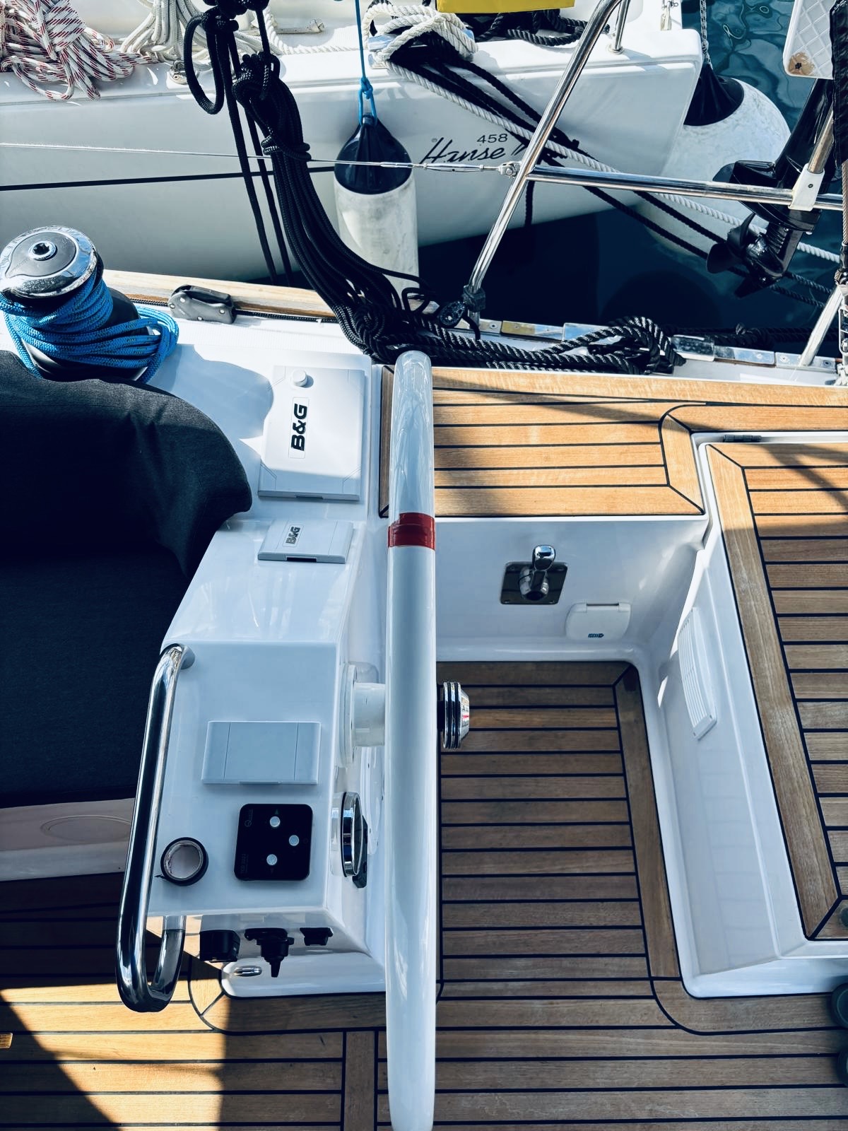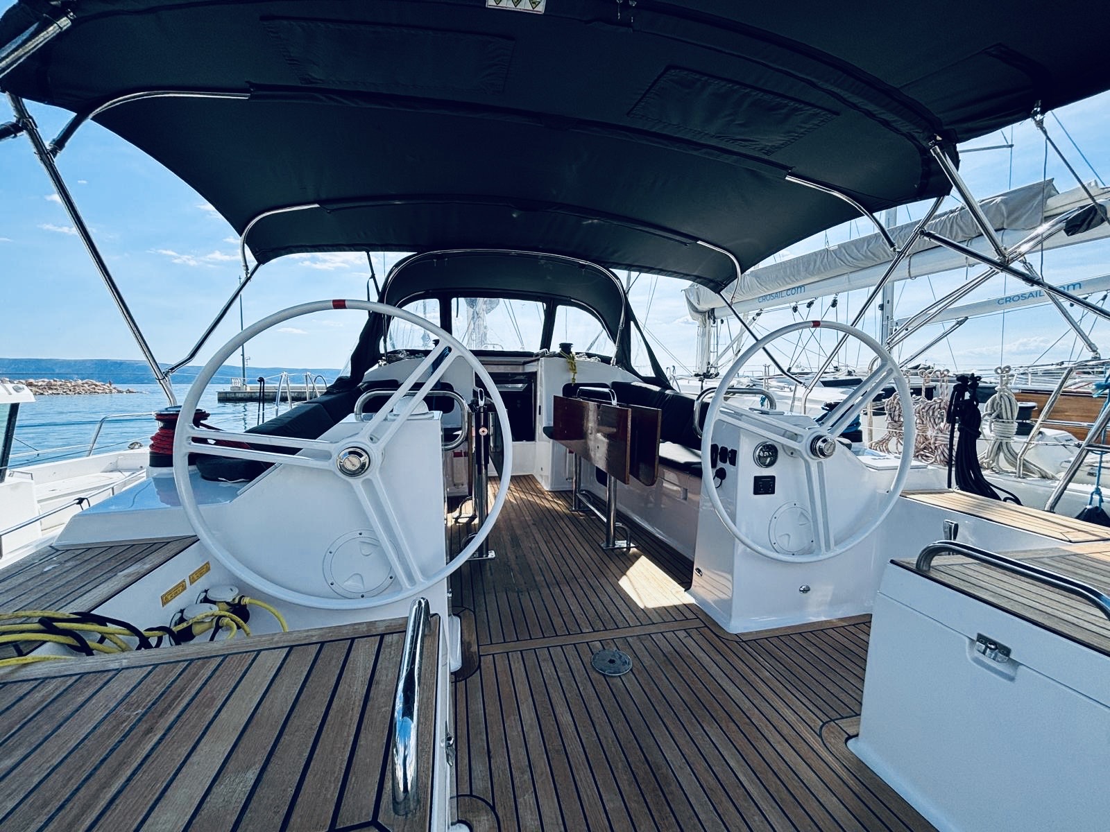 | Outside | Badeplattform, Biminitop, Cockpitlautsprecher, elektr. Ankerwinsch, Grill, Heckdusche, Teak im Cockpit |