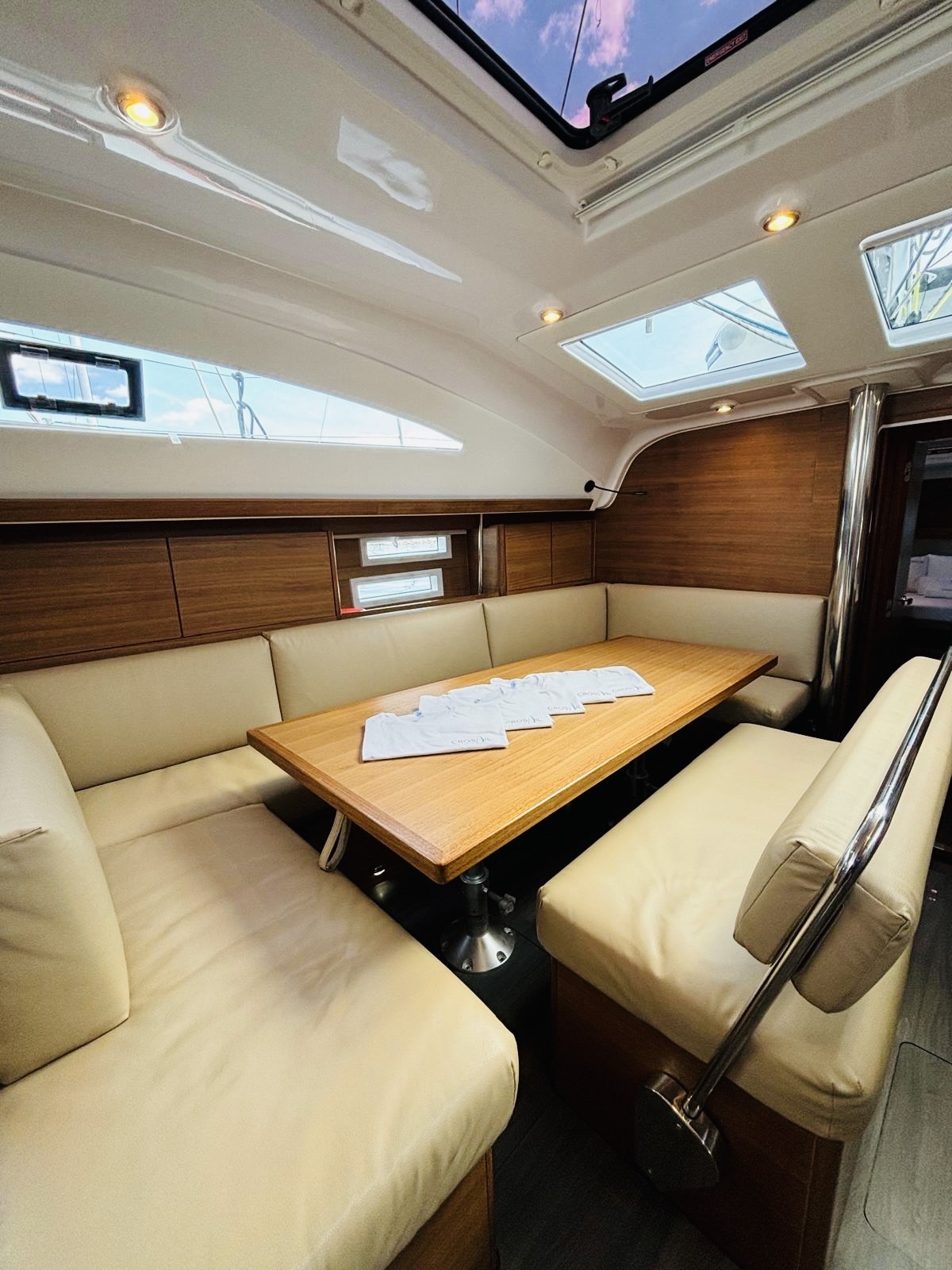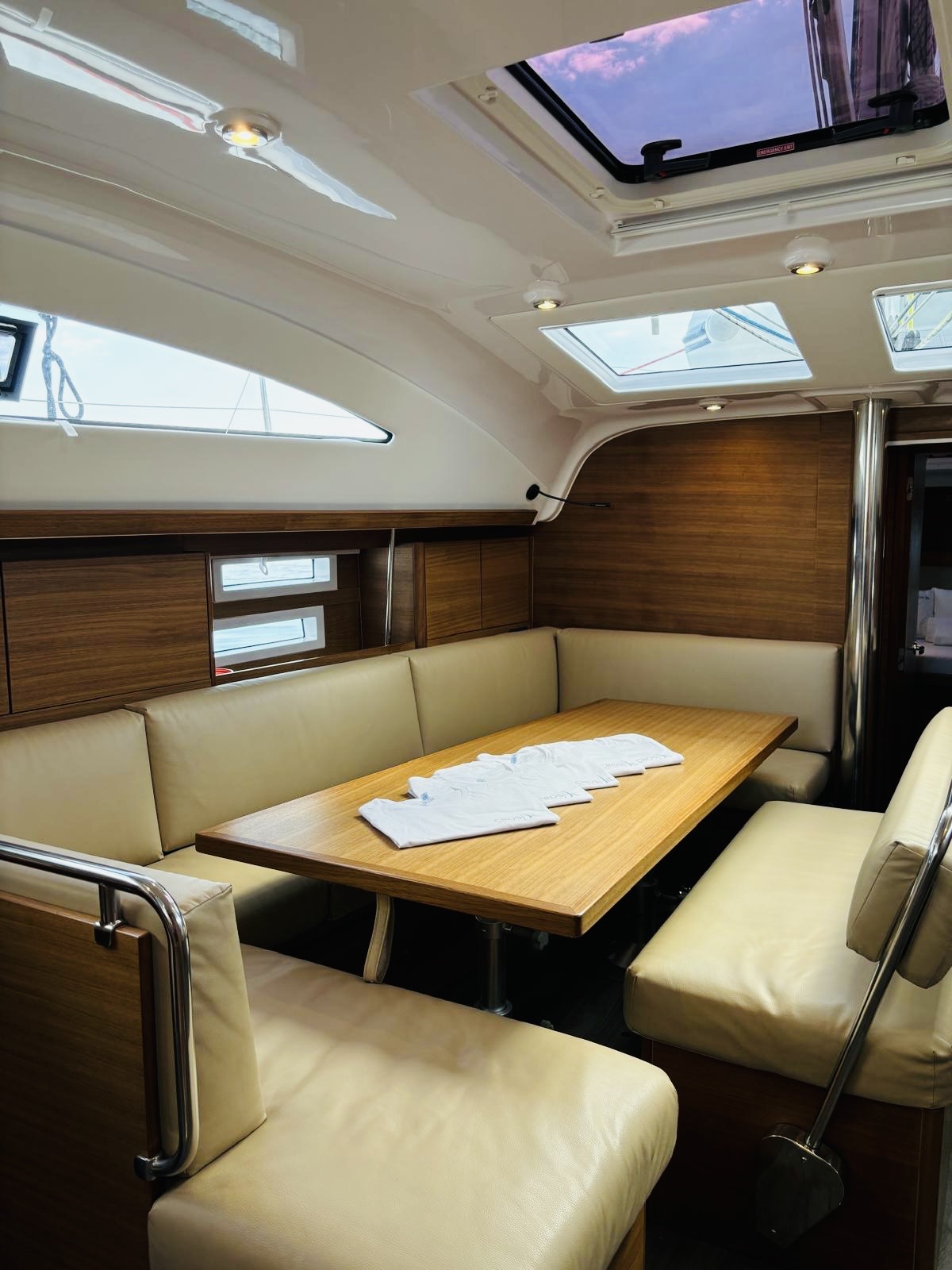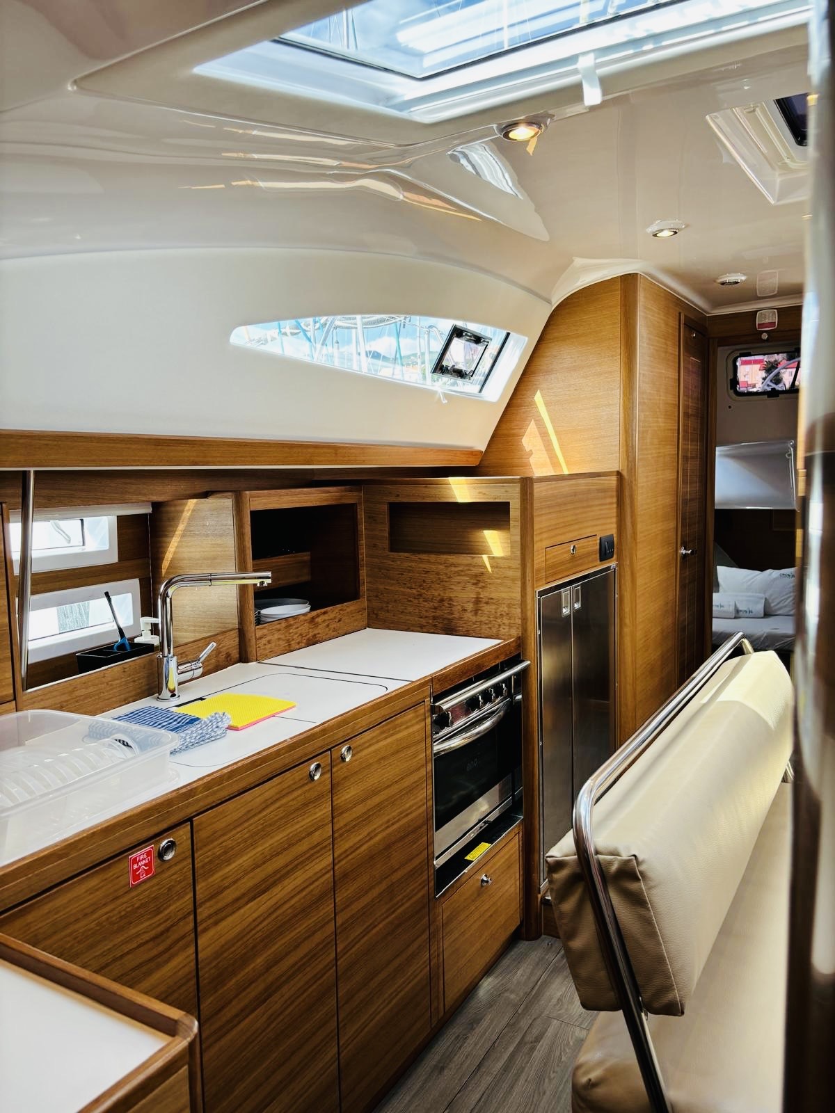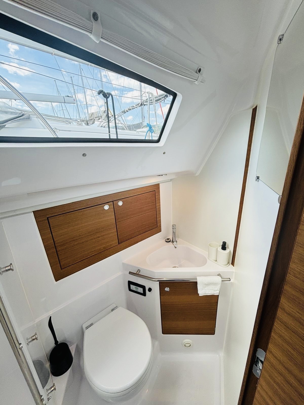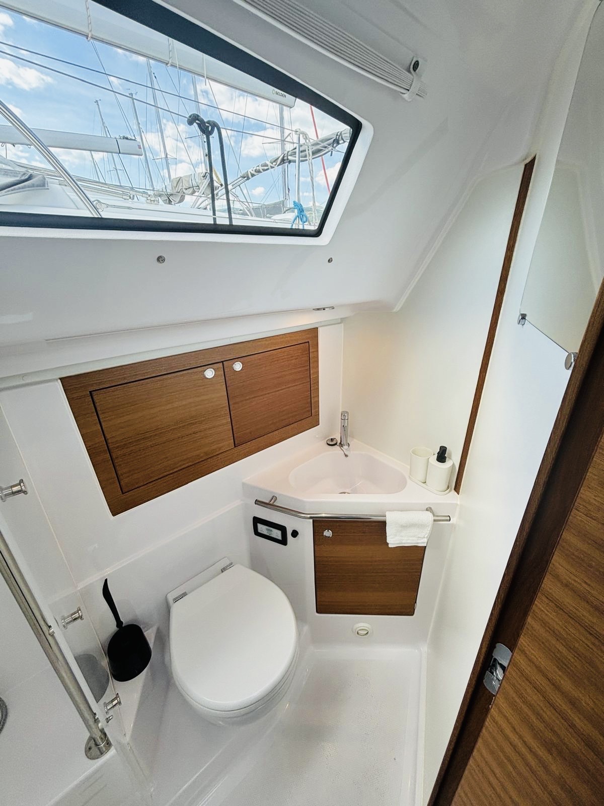 | Outside | Badeplattform, Biminitop, Cockpitlautsprecher, elektr. Ankerwinsch, Grill, Heckdusche, Teak im Cockpit |