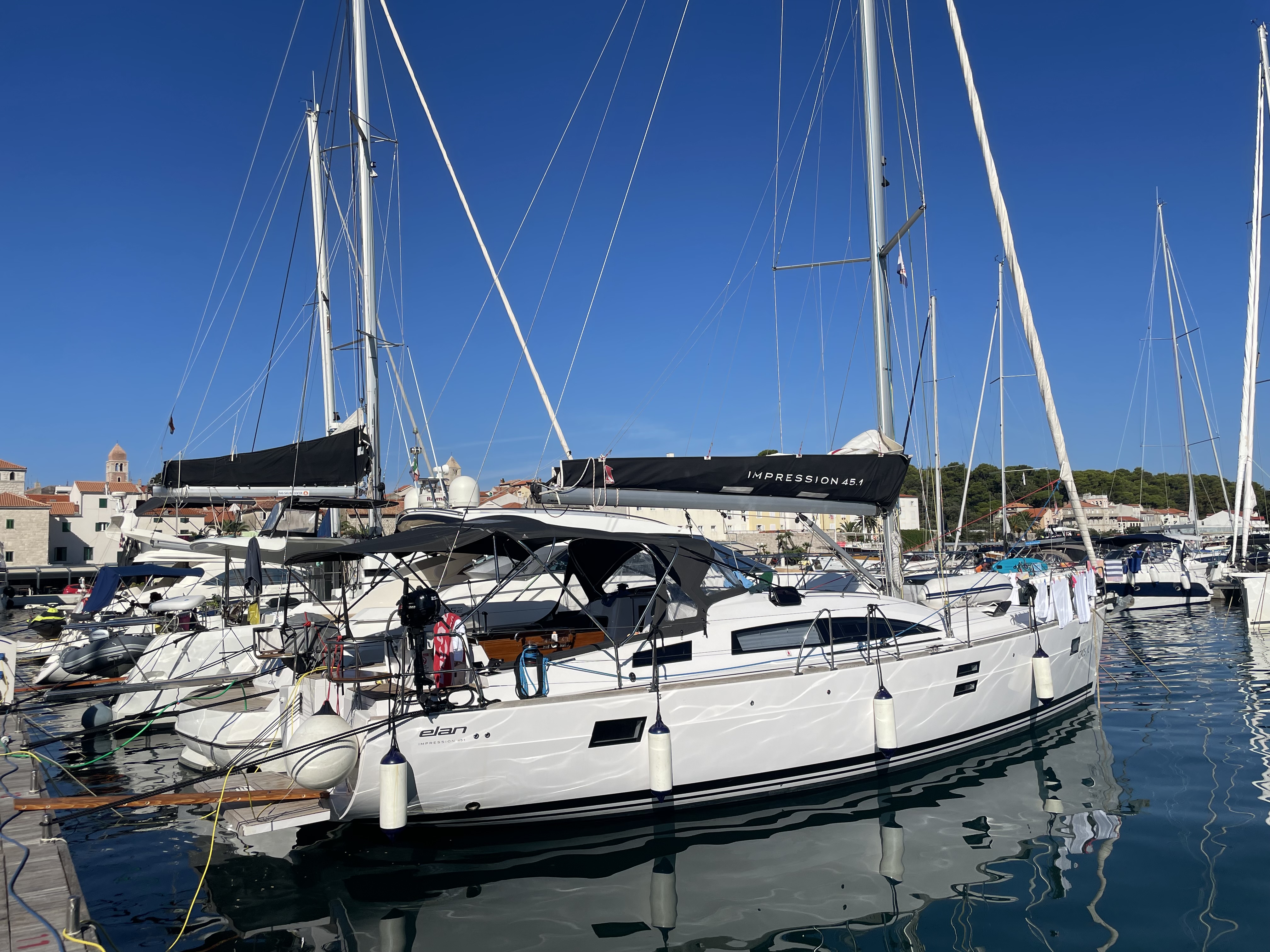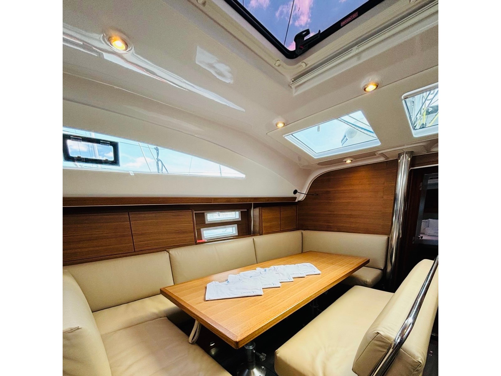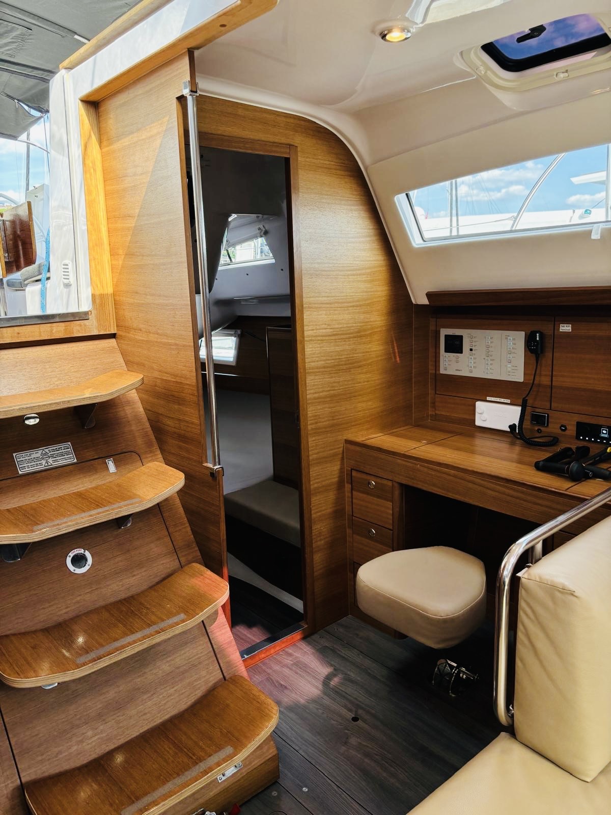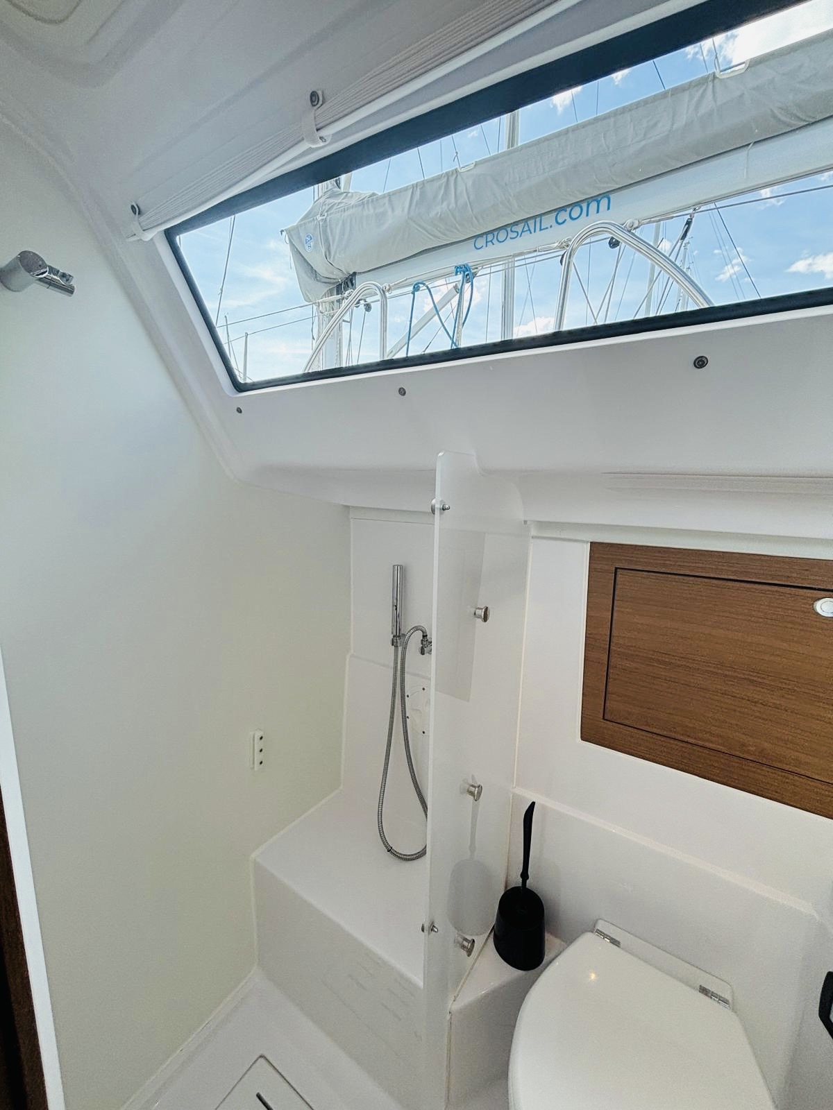 | Outside | Badeplattform, Biminitop, Cockpitlautsprecher, elektr. Ankerwinsch, Grill, Heckdusche, Teak im Cockpit |
