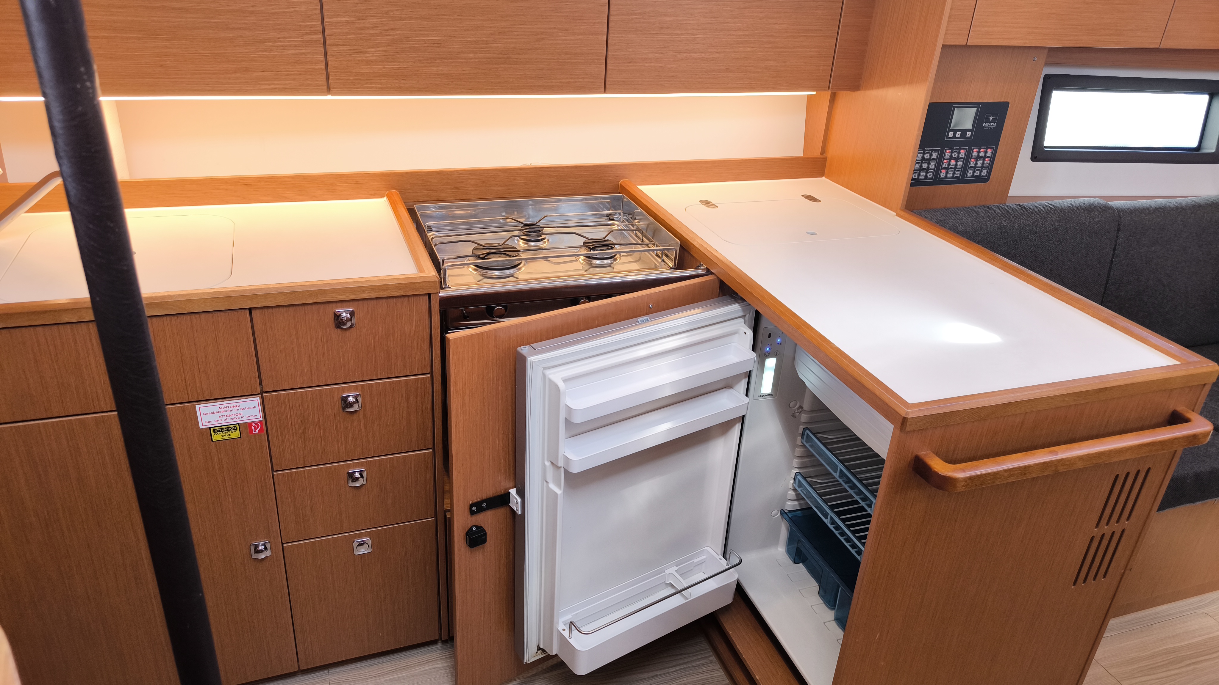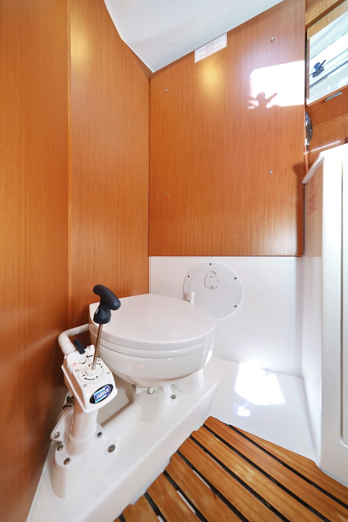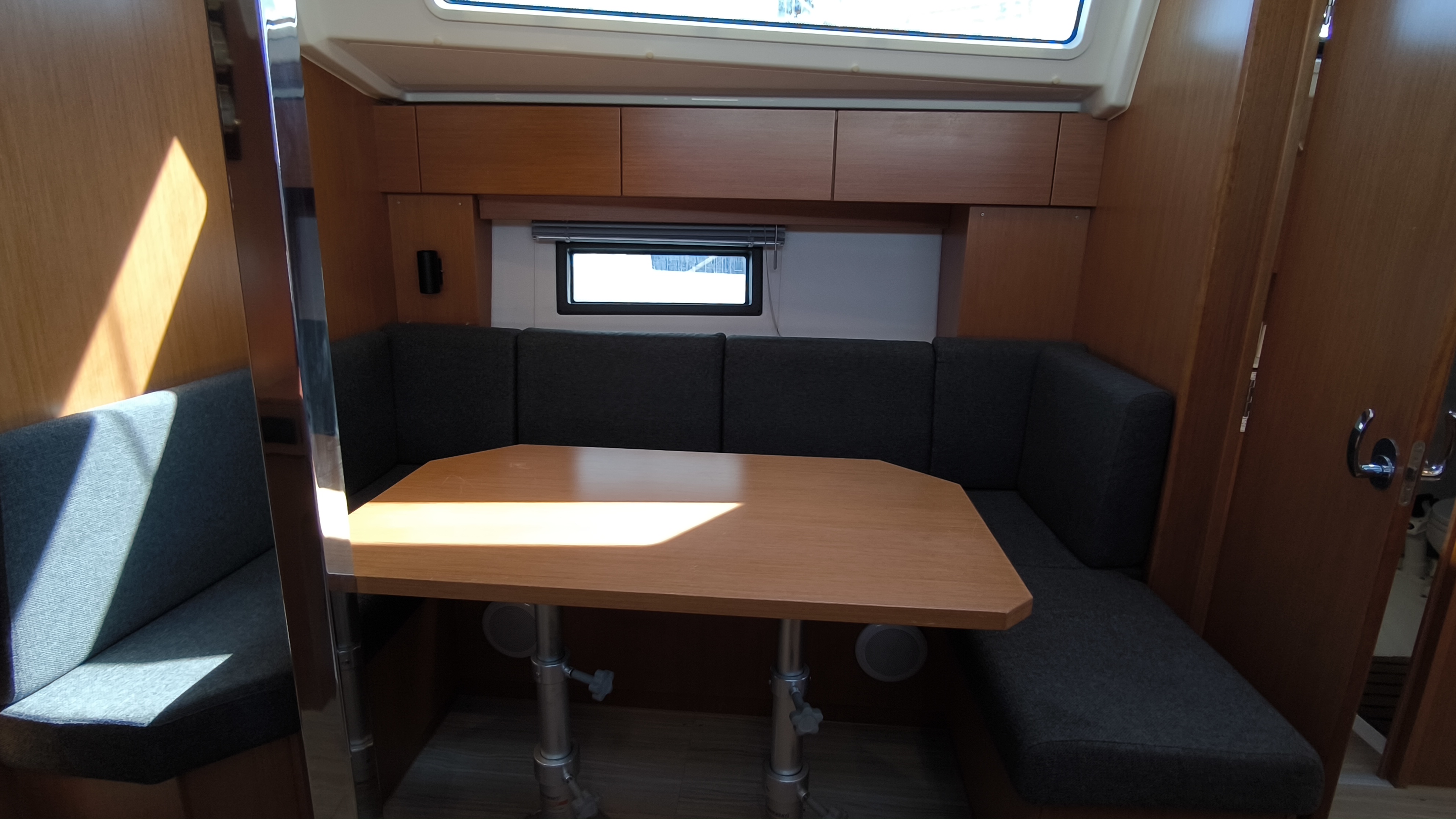 | Outside | 220 V-Landanschluss, Anker mit Kette, Badeplattform, Biminitop, Cockpitdusche, Cockpitlautsprecher, Cockpitpolster, Cockpittisch, elektr. Ankerwinsch, Fender, Festmacherleinen, Solaranlage, Sprayhood, Teak im Cockpit, Wantenschneider, Windex |