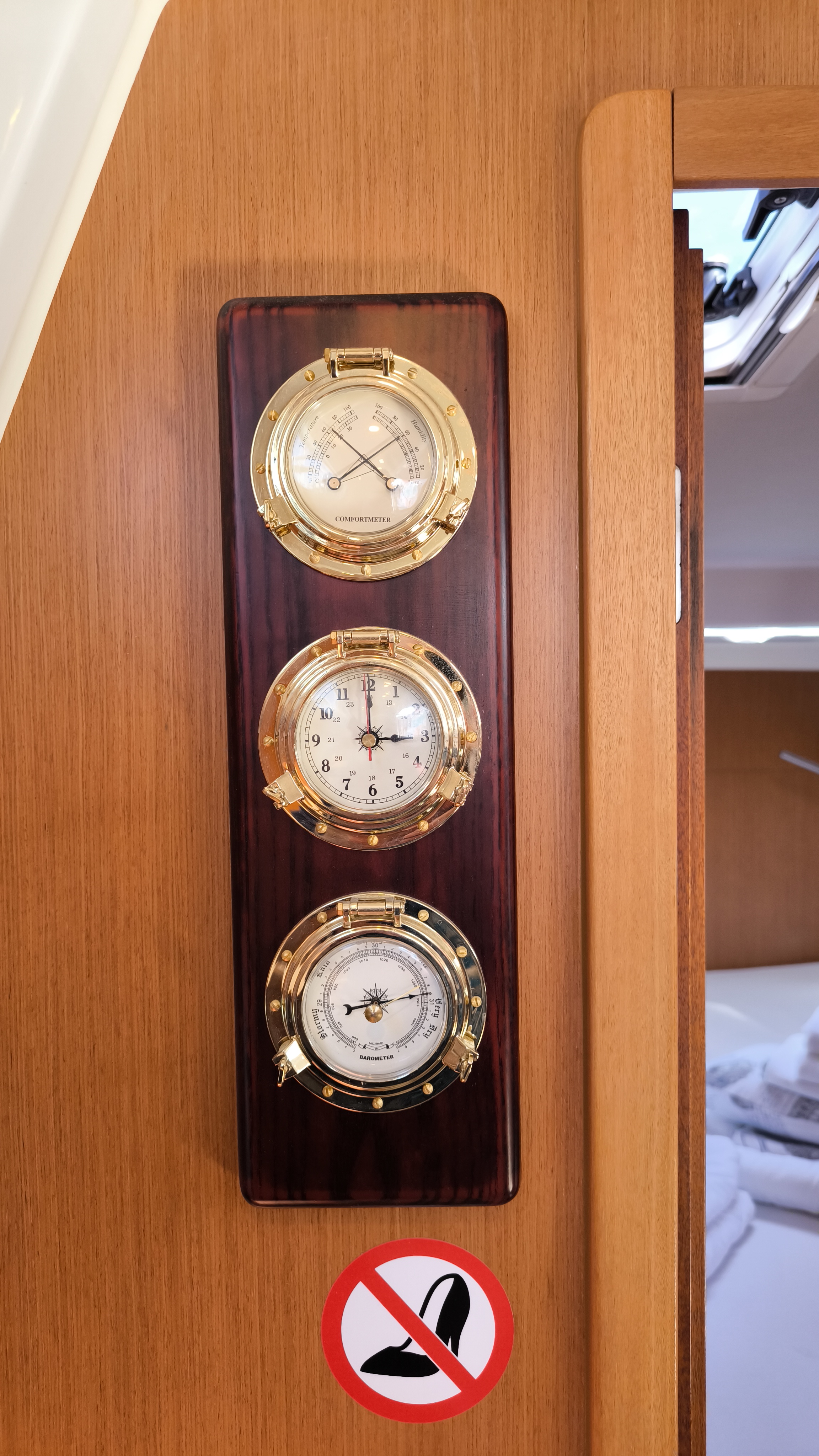 | Safety | Autopilot, Bootsmannstuhl, Bordapotheke, Bordwerkzeug, Bugstrahlruder, Feststoffschwimmwesten, Feuerlöscher, Lifebelts, Nebelhorn, Notpinne, Notsignale, Radarreflektor, Rettungskragen, Taschenlampe, UKW-Funk, Zweitanker |