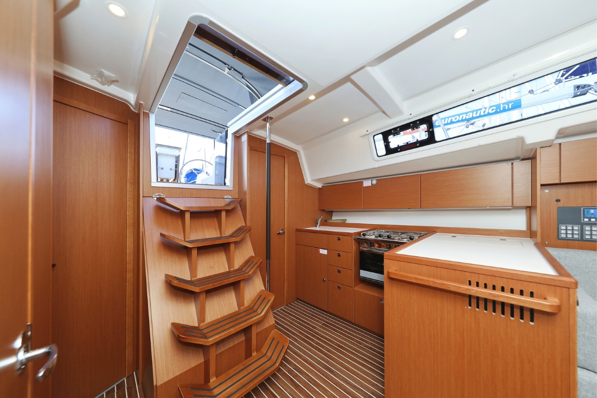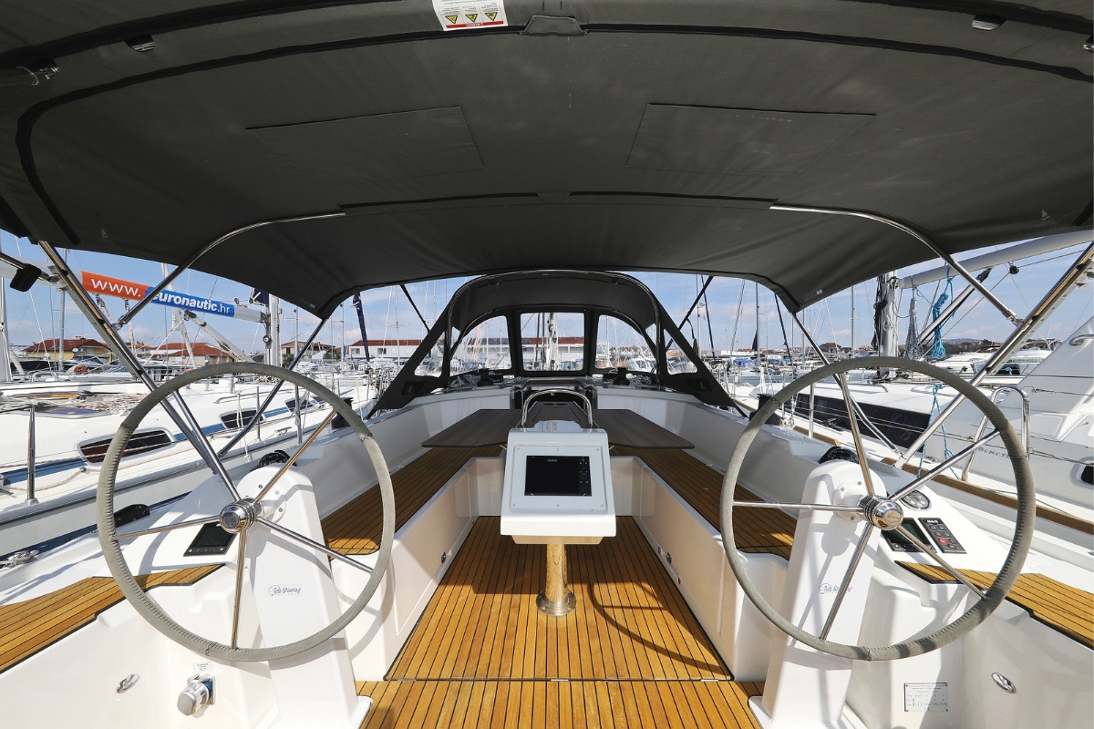| Outside | 220 V-Landanschluss, Anker mit Kette, Badeplattform, Biminitop, Cockpitdusche warm/kalt, Cockpitpolster, Cockpittisch (klappbar), elektr. Ankerwinsch, Fender, Festmacherleinen, Solaranlage, Sprayhood, Teak auf Badeplattform, Teak im Cockpit, Windex |